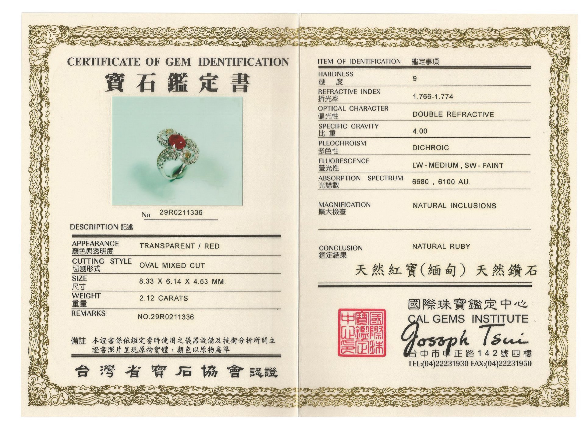 附國際珠寶鑑定中心證書