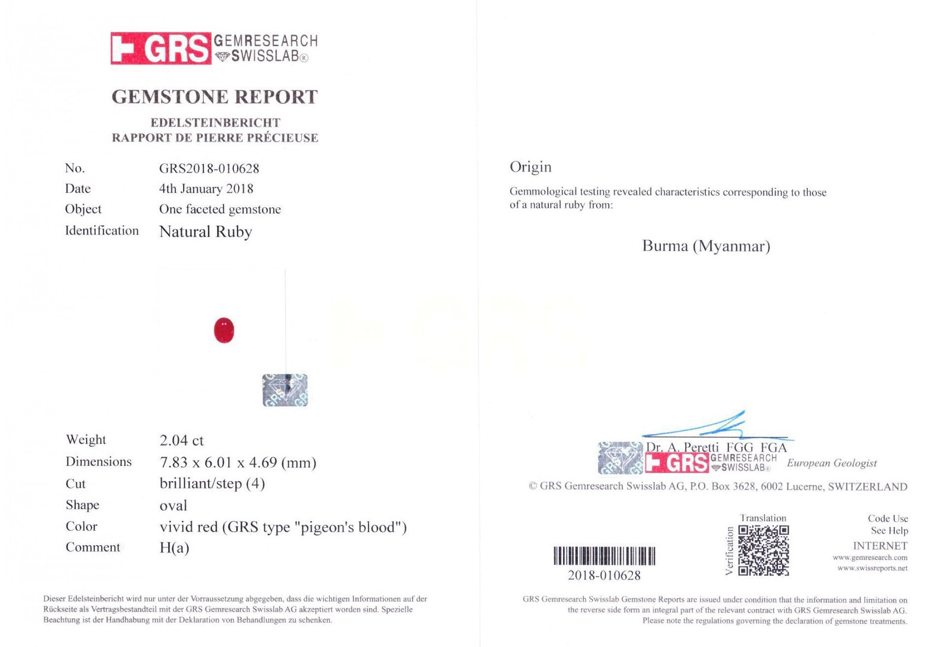 產地/顏色: 鴿血紅/緬甸 H(a)