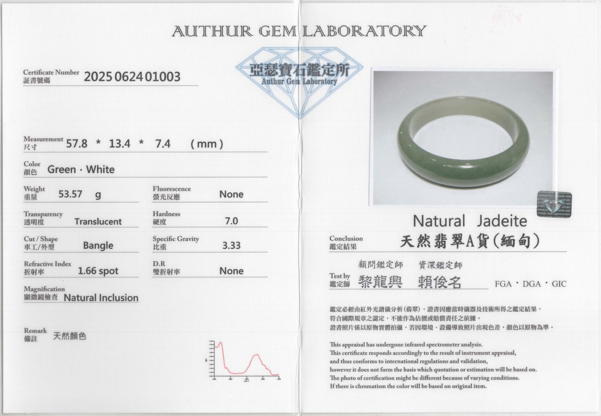 亞瑟寶石鑑定書(開新視窗)