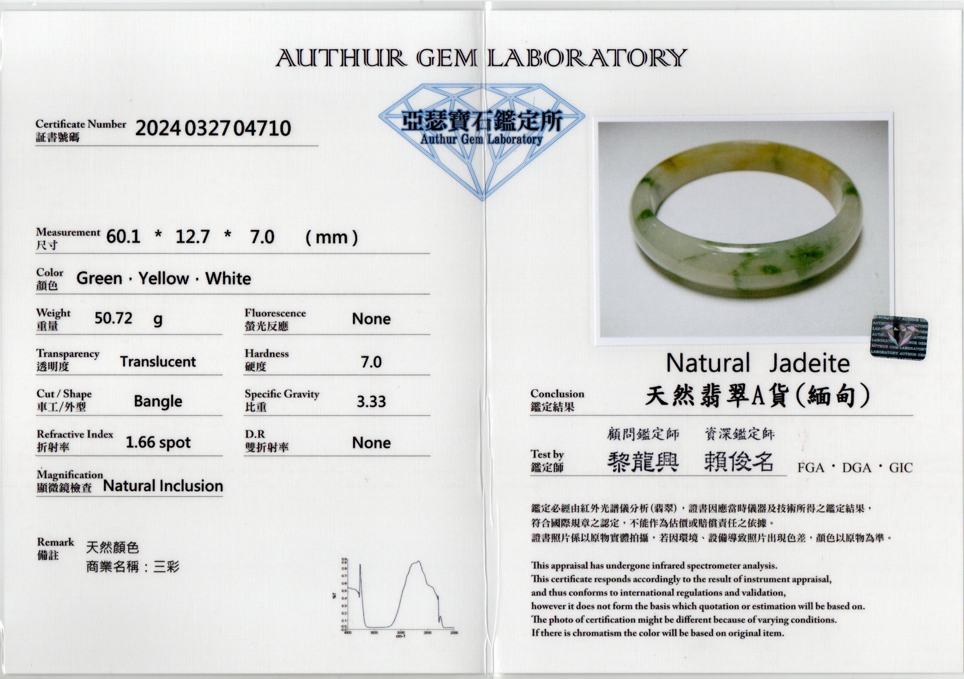 亞瑟寶石鑑定書(開新視窗)