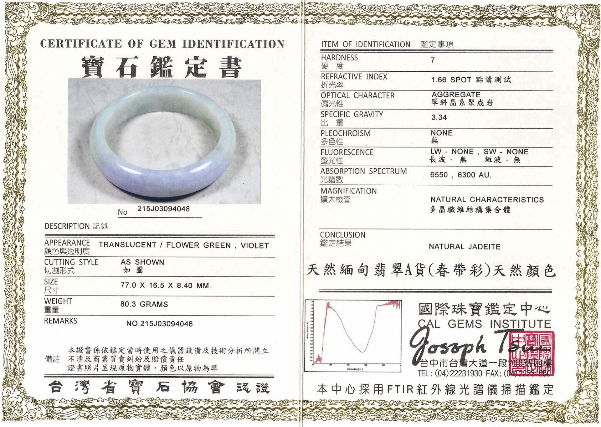 亞瑟寶石鑑定書(開新視窗)
