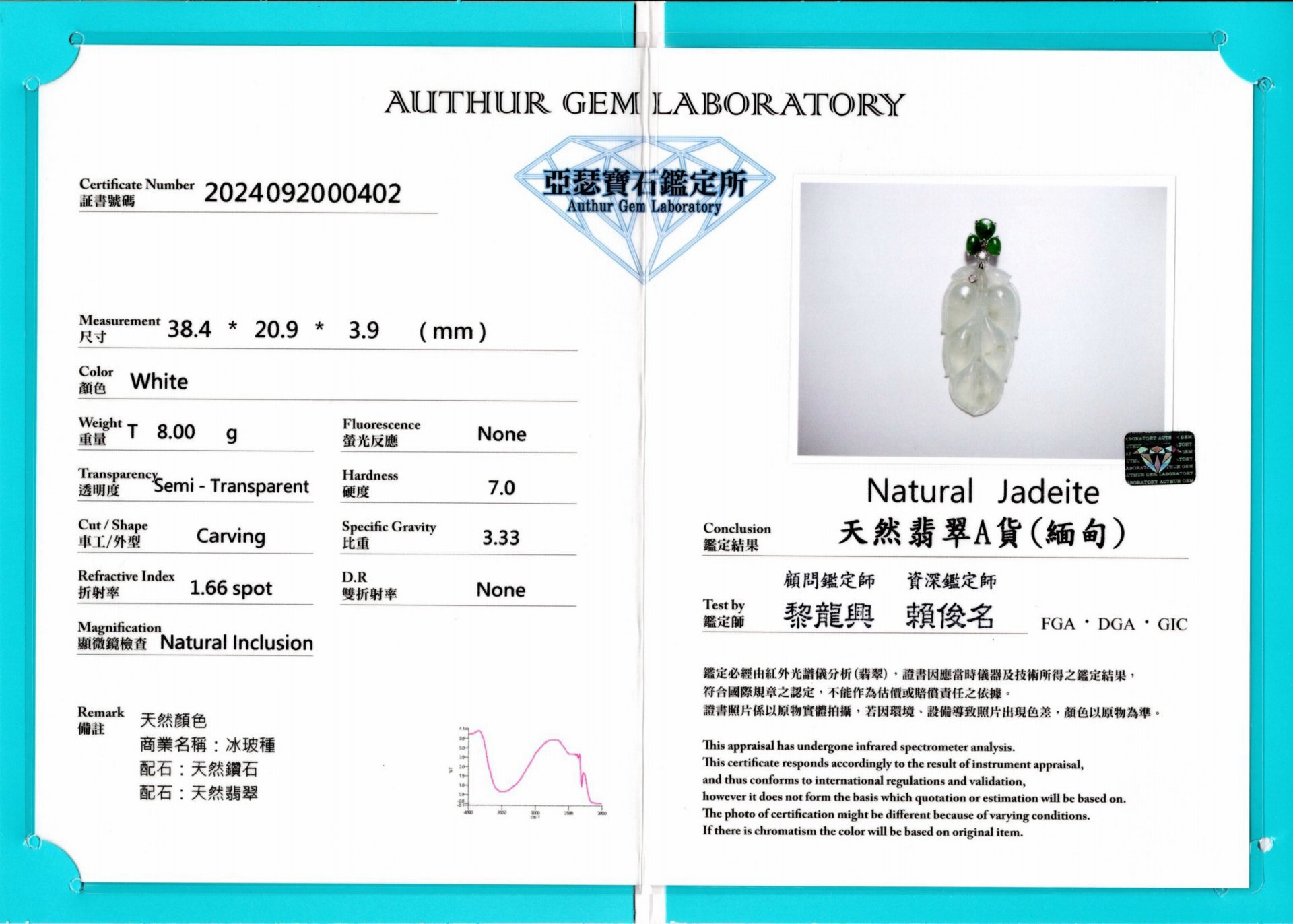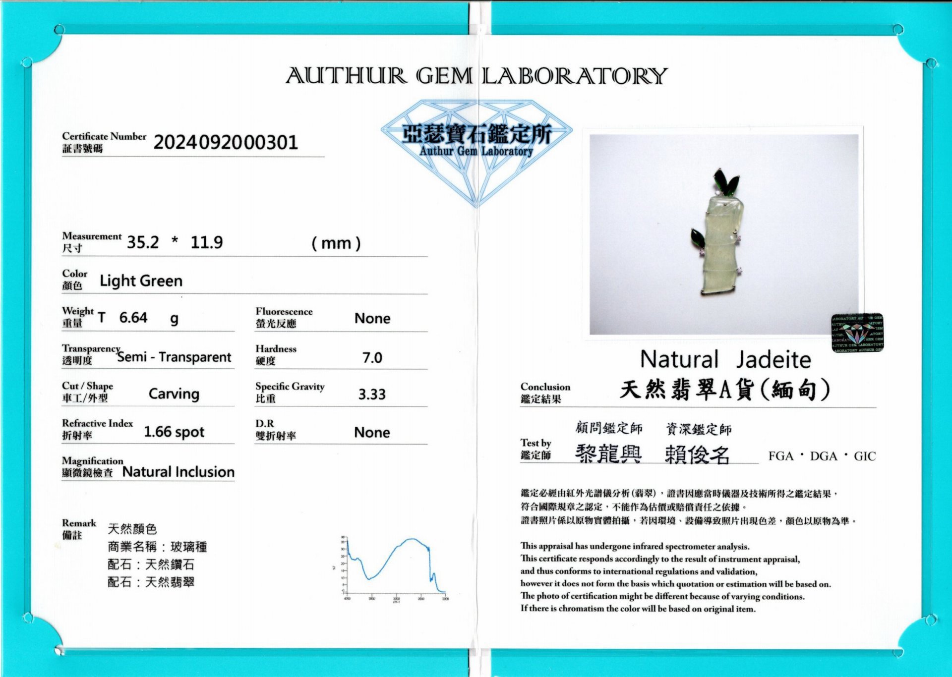亞瑟寶石鑑定書(開新視窗)
