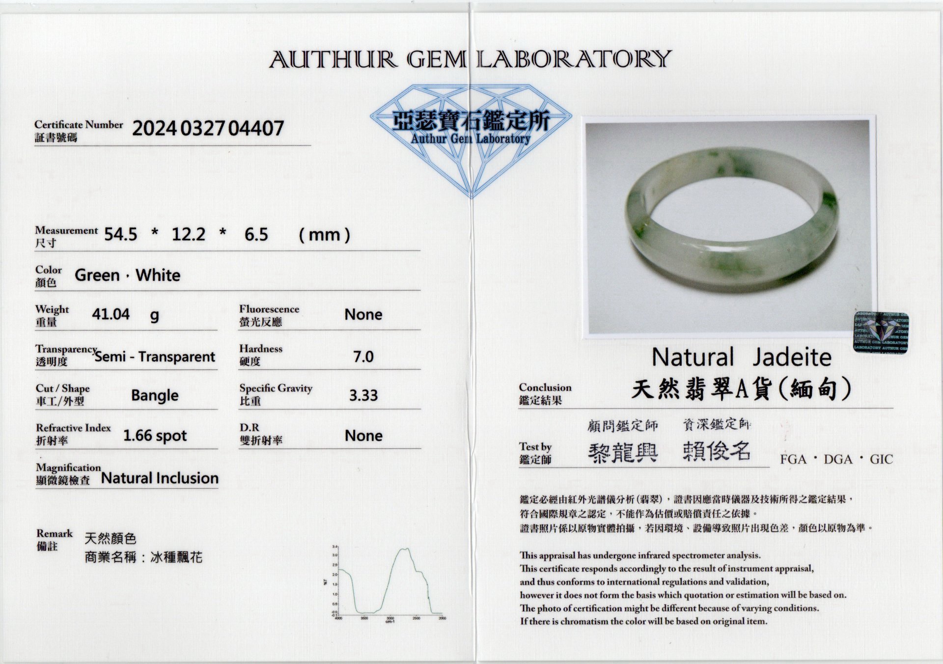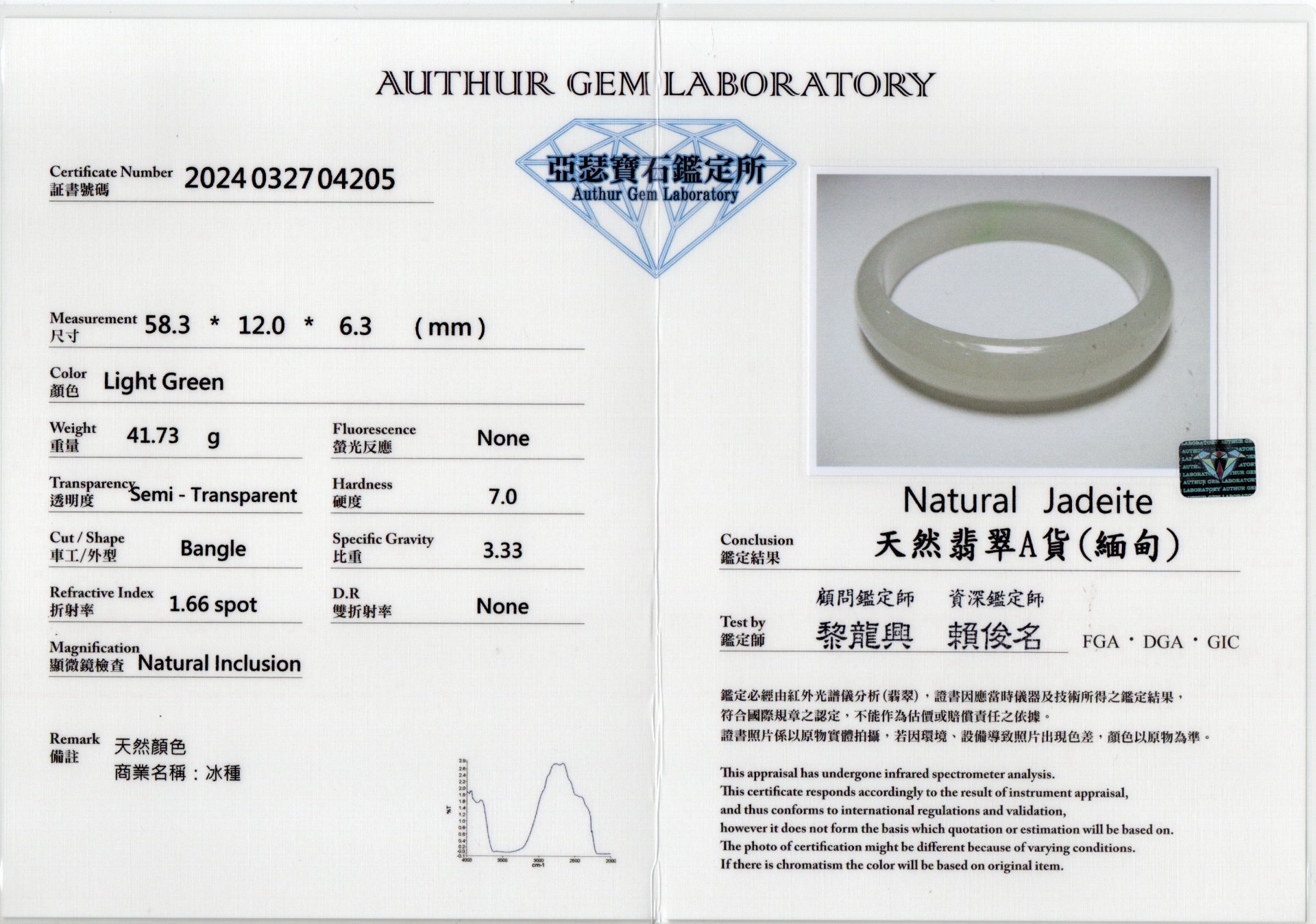 亞瑟寶石鑑定書(開新視窗)