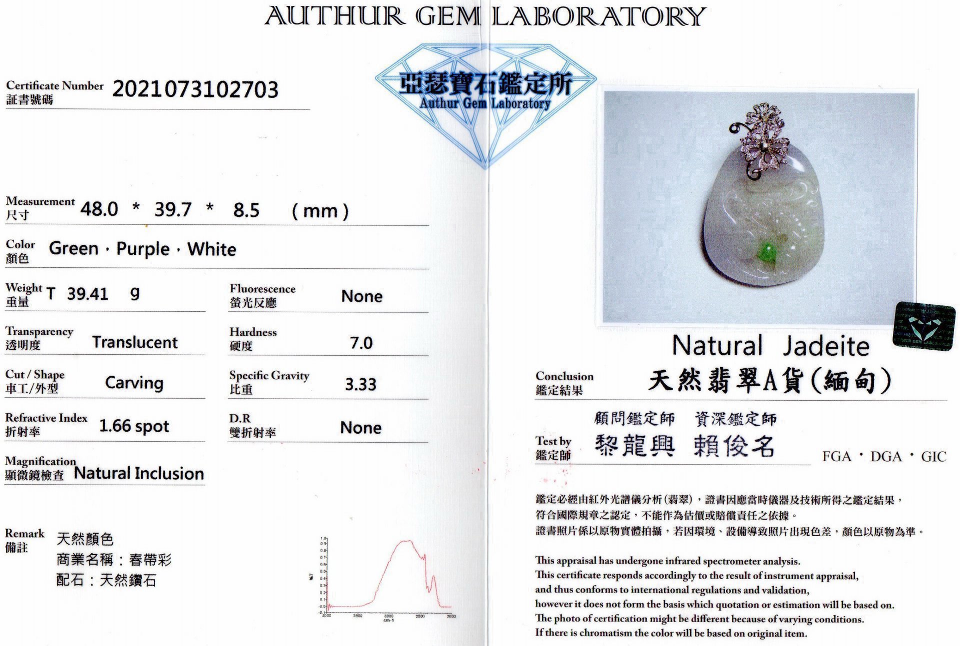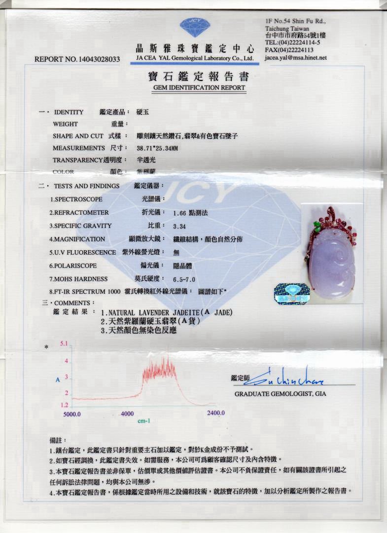 亞瑟寶石鑑定書(開新視窗)