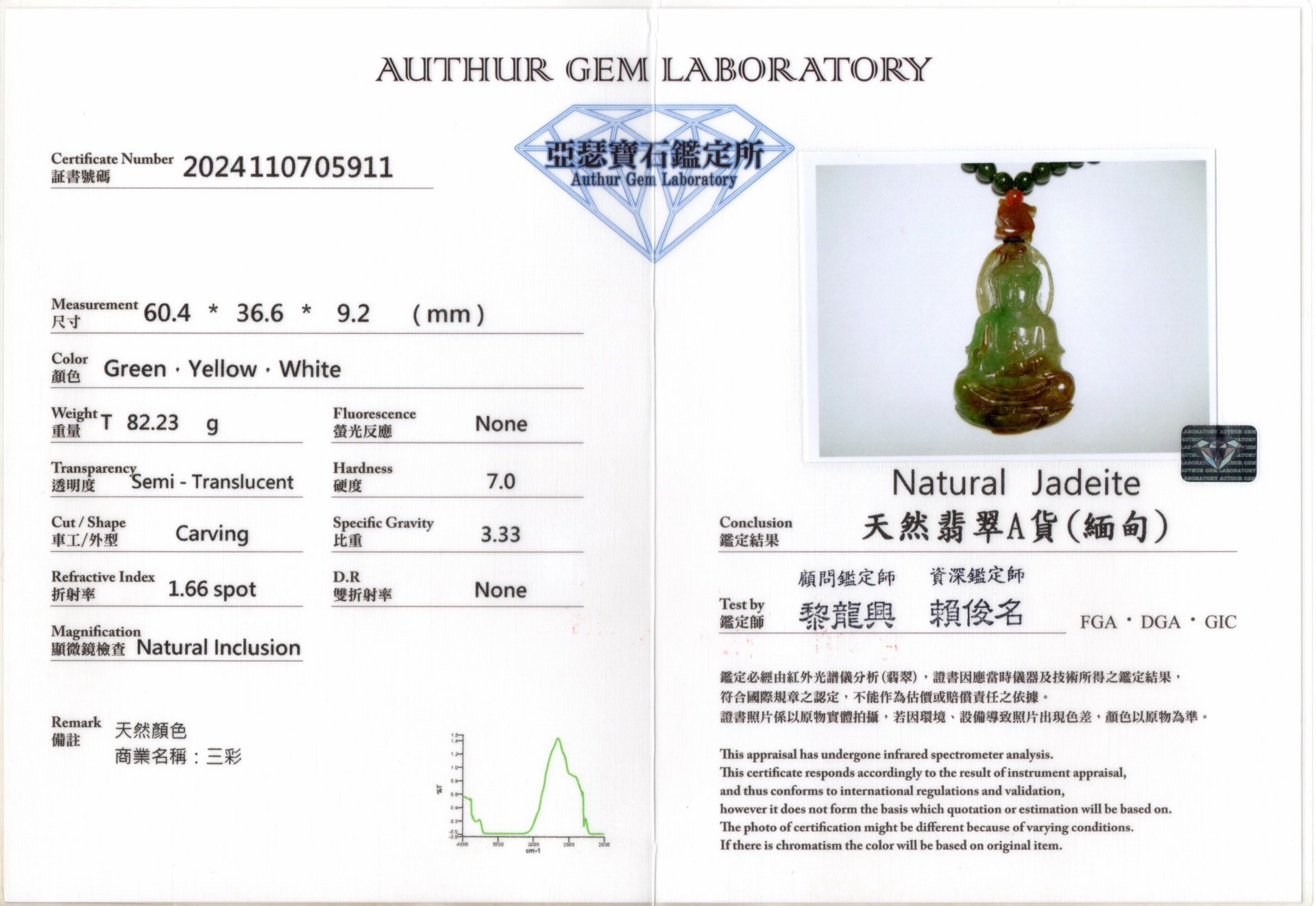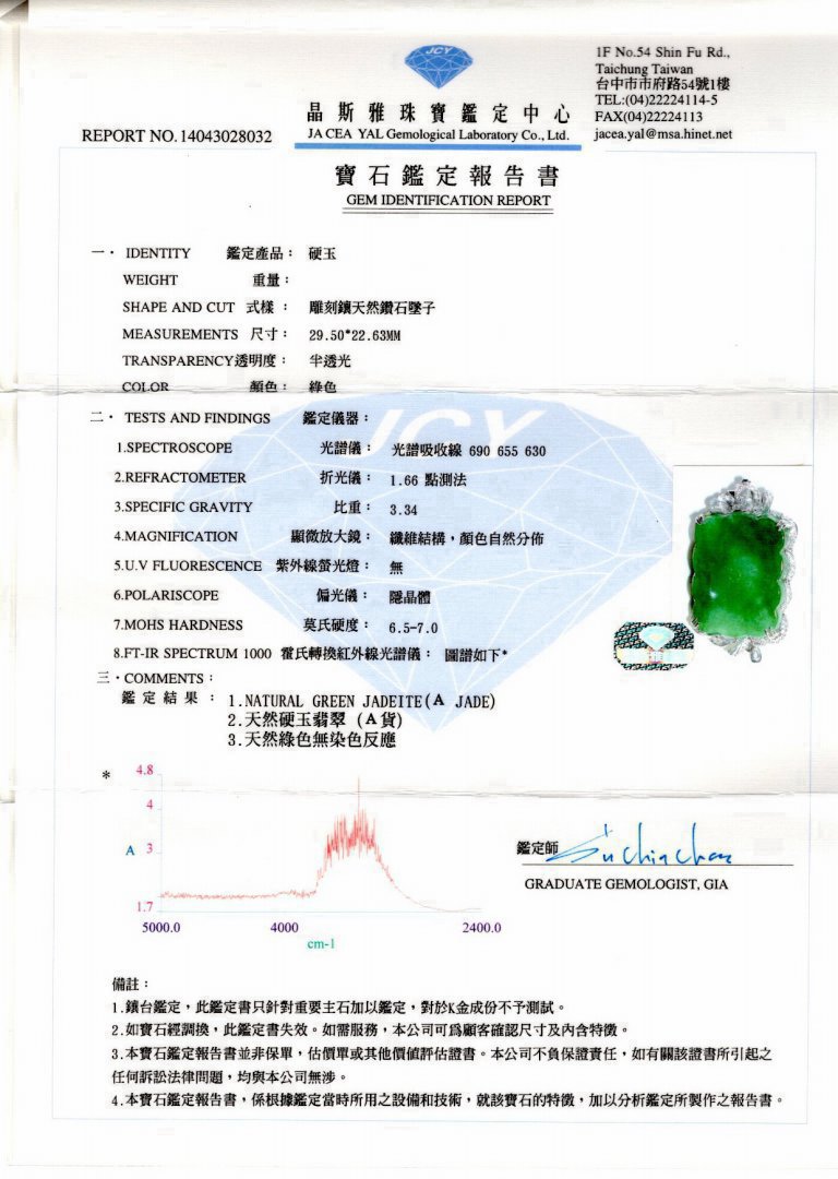 亞瑟寶石鑑定書(開新視窗)