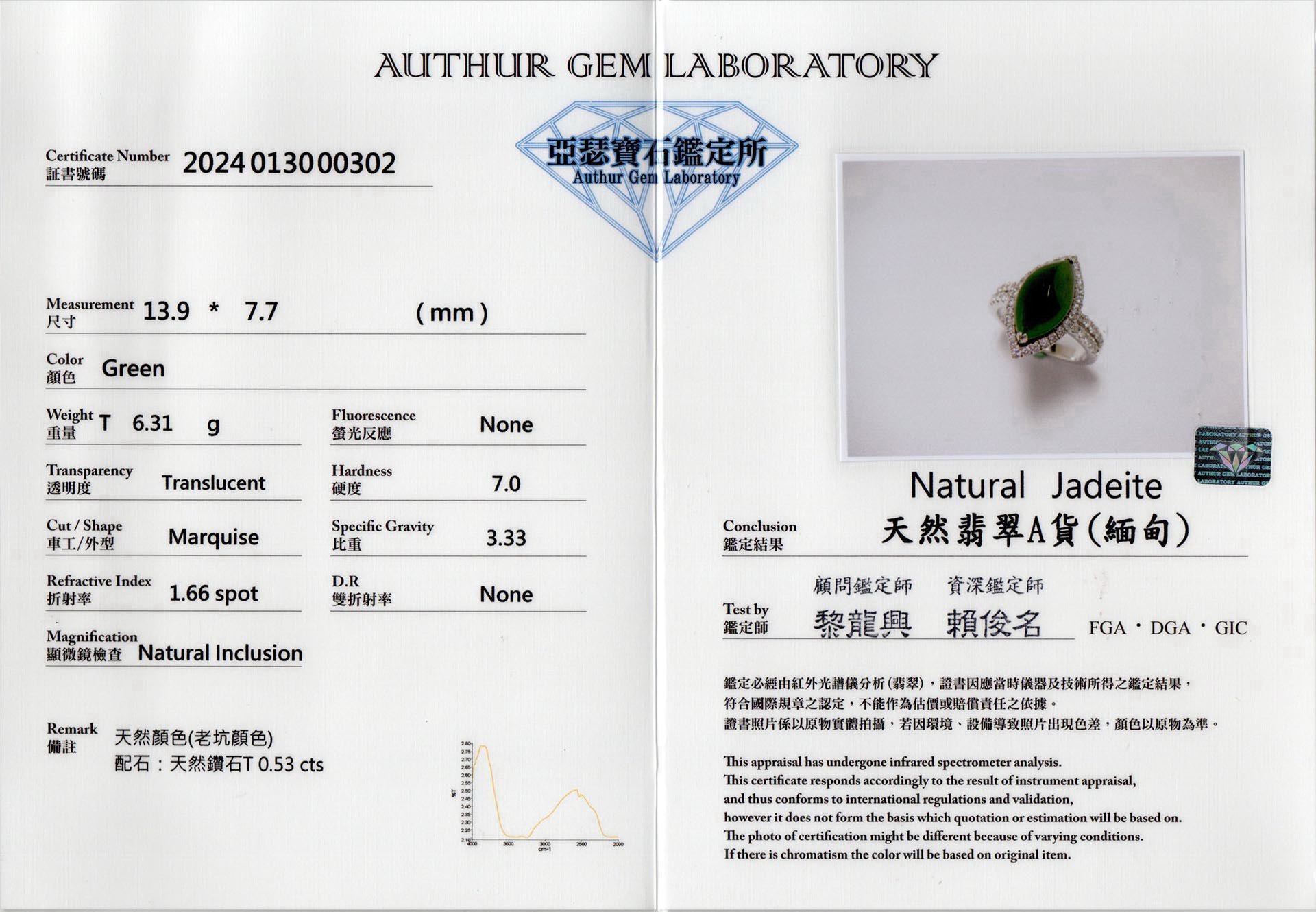 翡翠有玉石之王的美譽,是玉石中的硬玉類,其化學成分是鈉鋁矽酸鹽,礦物成分是以硬玉為主的輝石類,結構是由無數細小的纖維狀微晶縱橫交織而成的緻密塊狀集合體,具有毯狀構造。十分堅韌,能耐相當高的撞擊力和壓力,其製品經久耐用。在我國寶玉石界素有黃為翡,綠為翠的說法。玉扳指最早之前是騎射時,用來保護手指的一種用具,後來慢慢演變成權利、地位的象徵。在古代,在清朝的眾多皇帝當中,許多都喜愛玉扳指,乾隆的一生很喜歡玉,其中還對扳指情有獨鍾,還寫下了一首詩來詠贊:「快馬飛生耳後風,浮麋數肋中無空。漫言刻玉占佳兆,發羽抨弦屢此同。」其實在最早的時候,玉扳指只是作為一種弓射使用的器物,到後來,便慢慢地發展成為人們賞玩、收藏的對象。