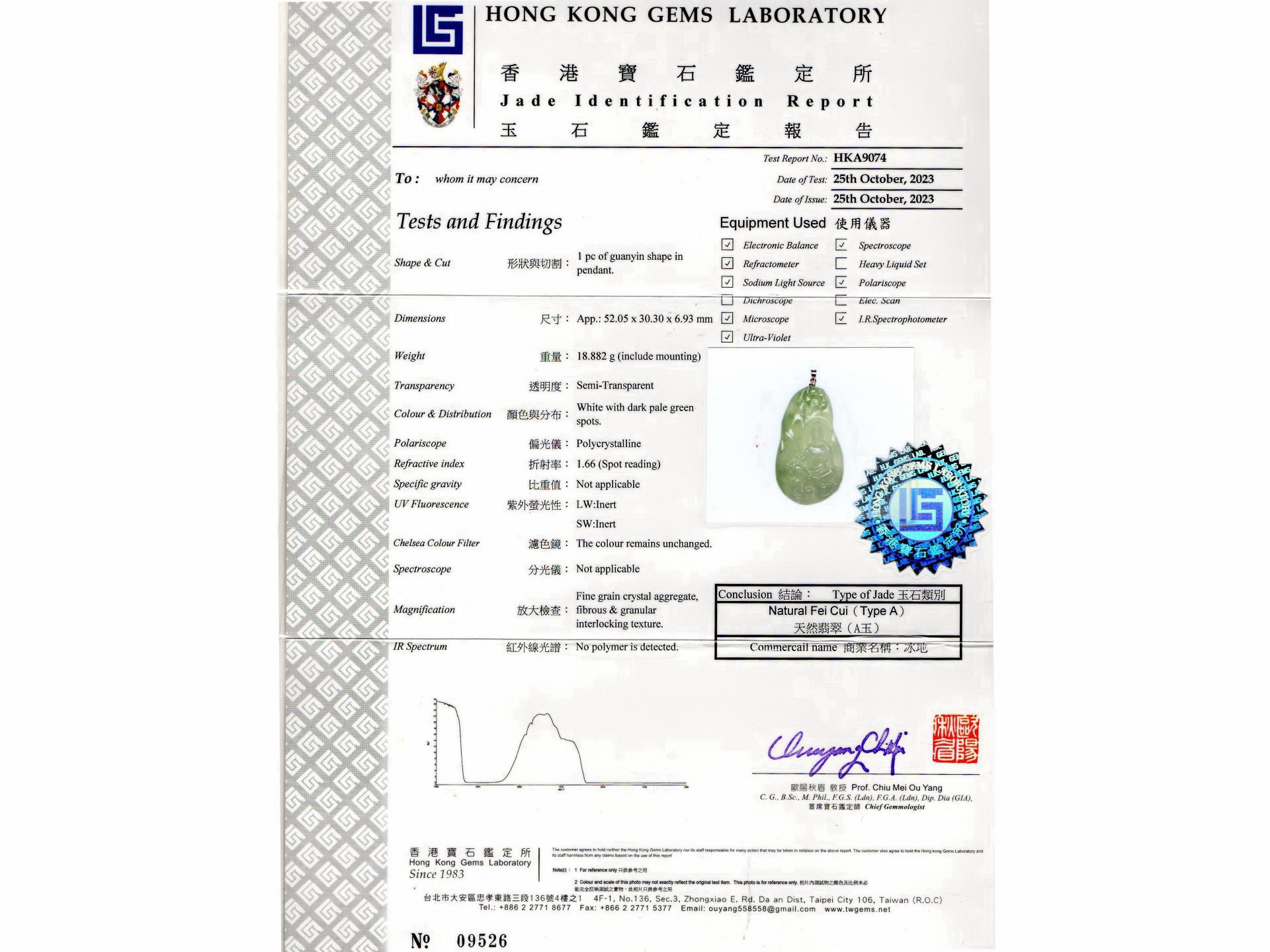 亞瑟寶石鑑定書(開新視窗)