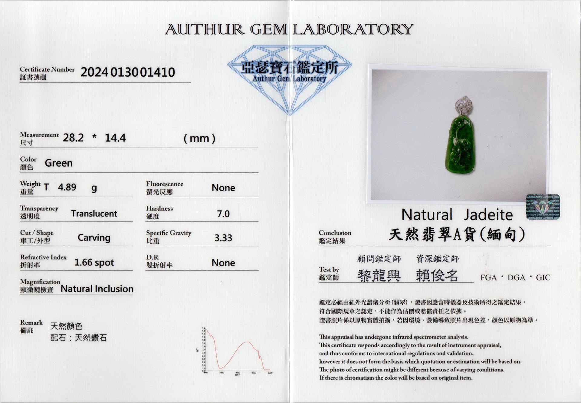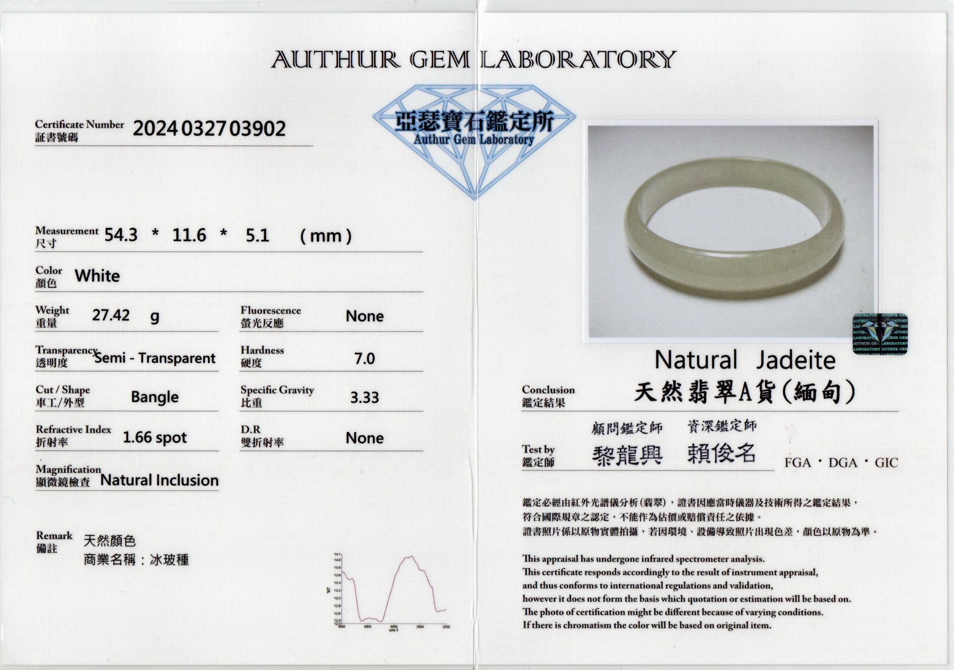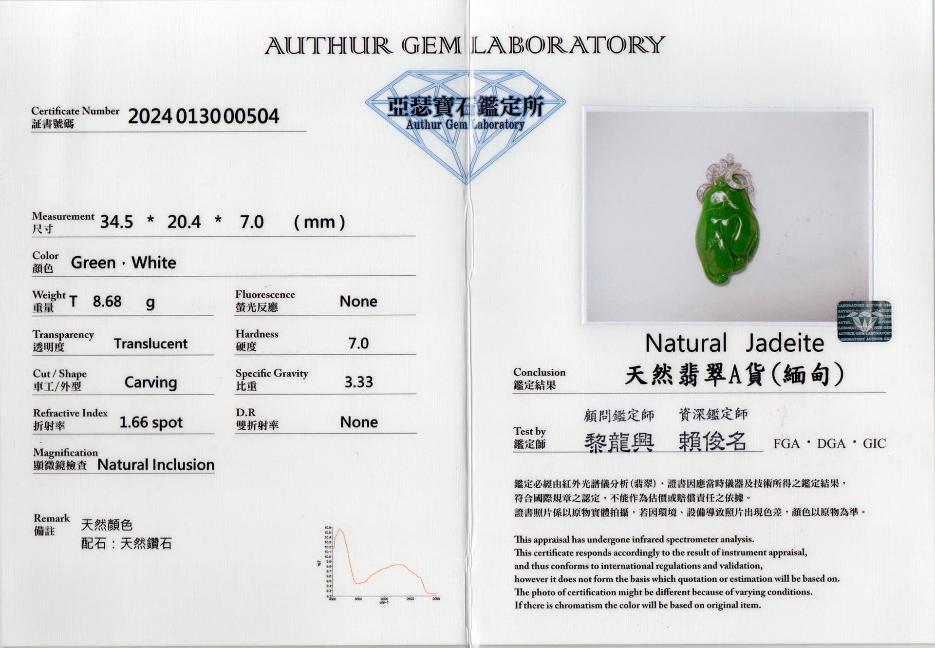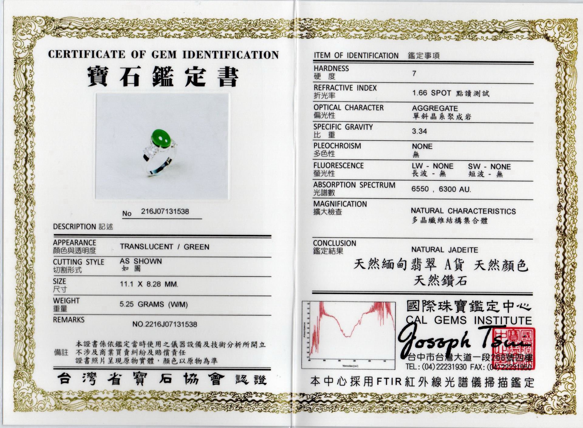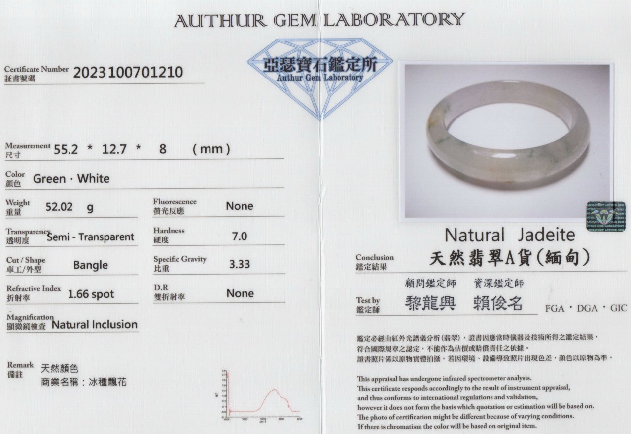 亞瑟寶石鑑定書(開新視窗)