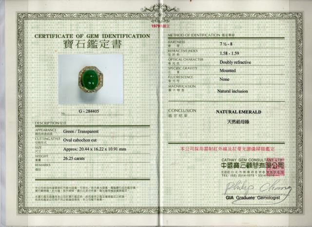 配石:鑽石28粒共0.77CT;祖母綠5粒共0.55CT