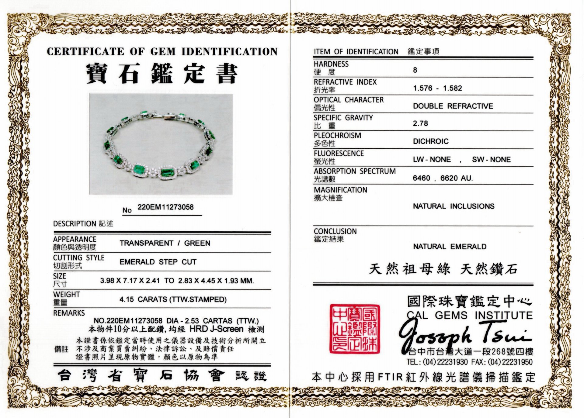 配石:鑽石258粒共2.53CT;祖母綠12粒共4.15CT