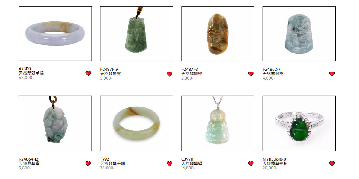 | NO.2 | 翡翠戒指 | 高 | 戒圍可透過修改調整 | 蛋面種水色需達頂級 |
