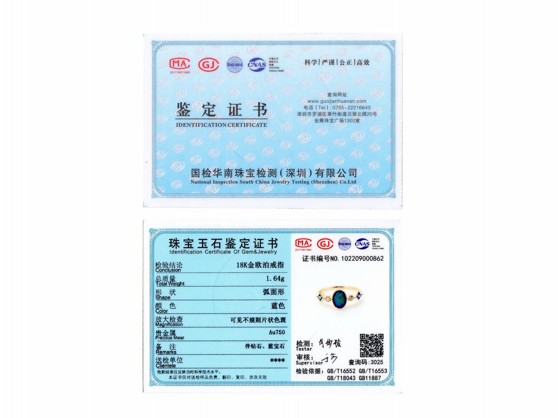 配石:鑽石2顆總重約0.04ct;藍寶2顆總重約0.145ct