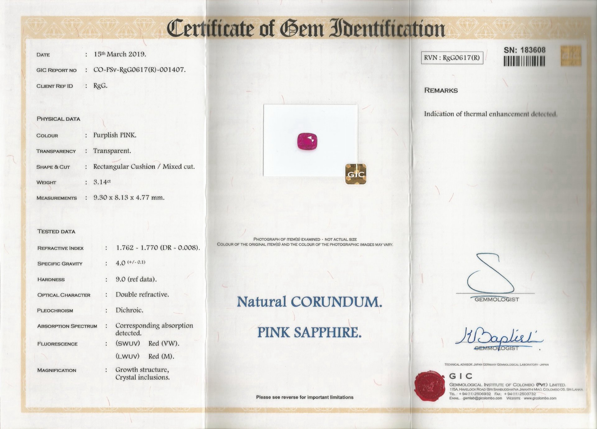 附三張鑑定證書:GRS、中國張證書、國際珠寶證