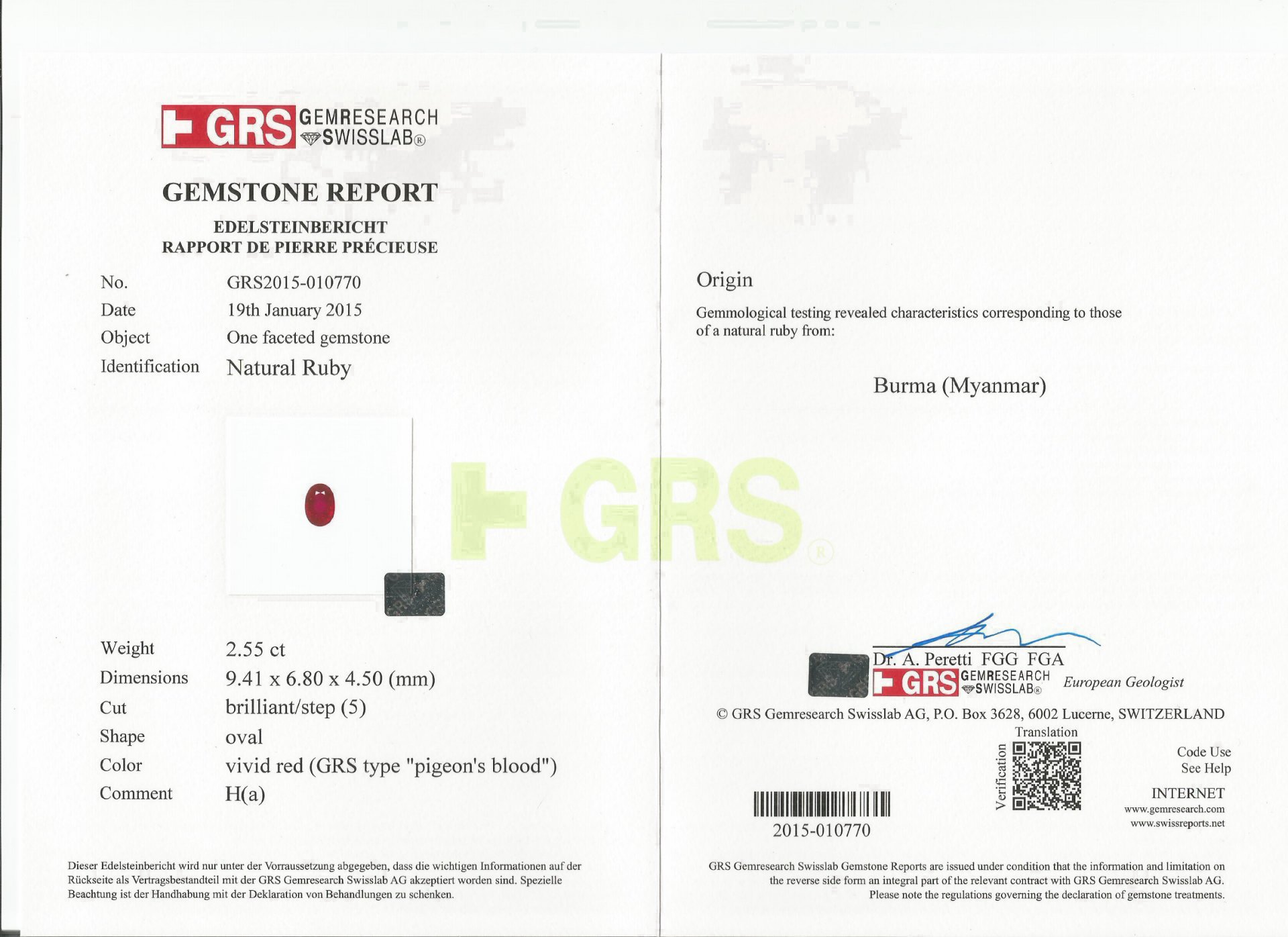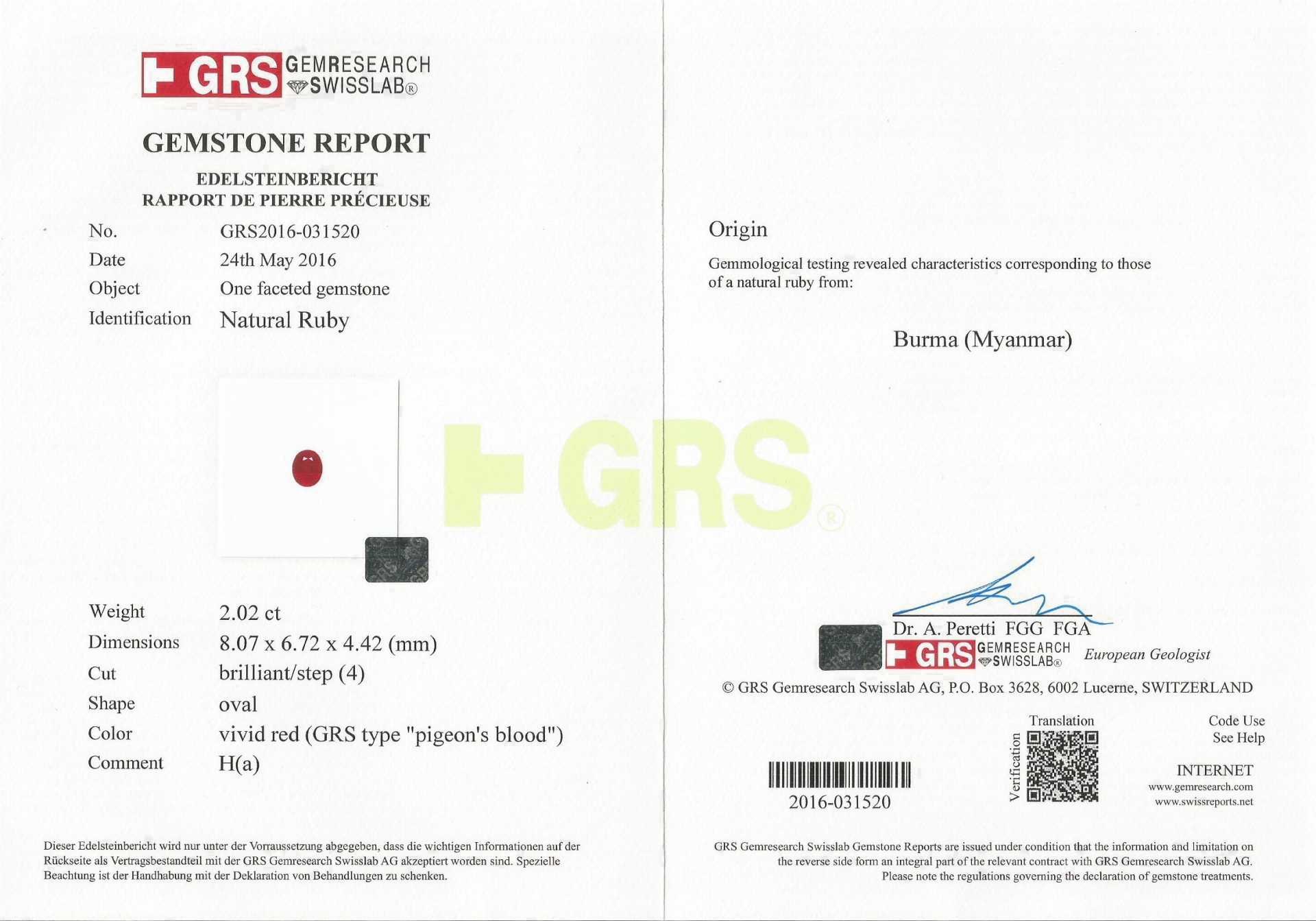 產地/顏色:Pigeon's blood鴿血紅/Burma緬甸