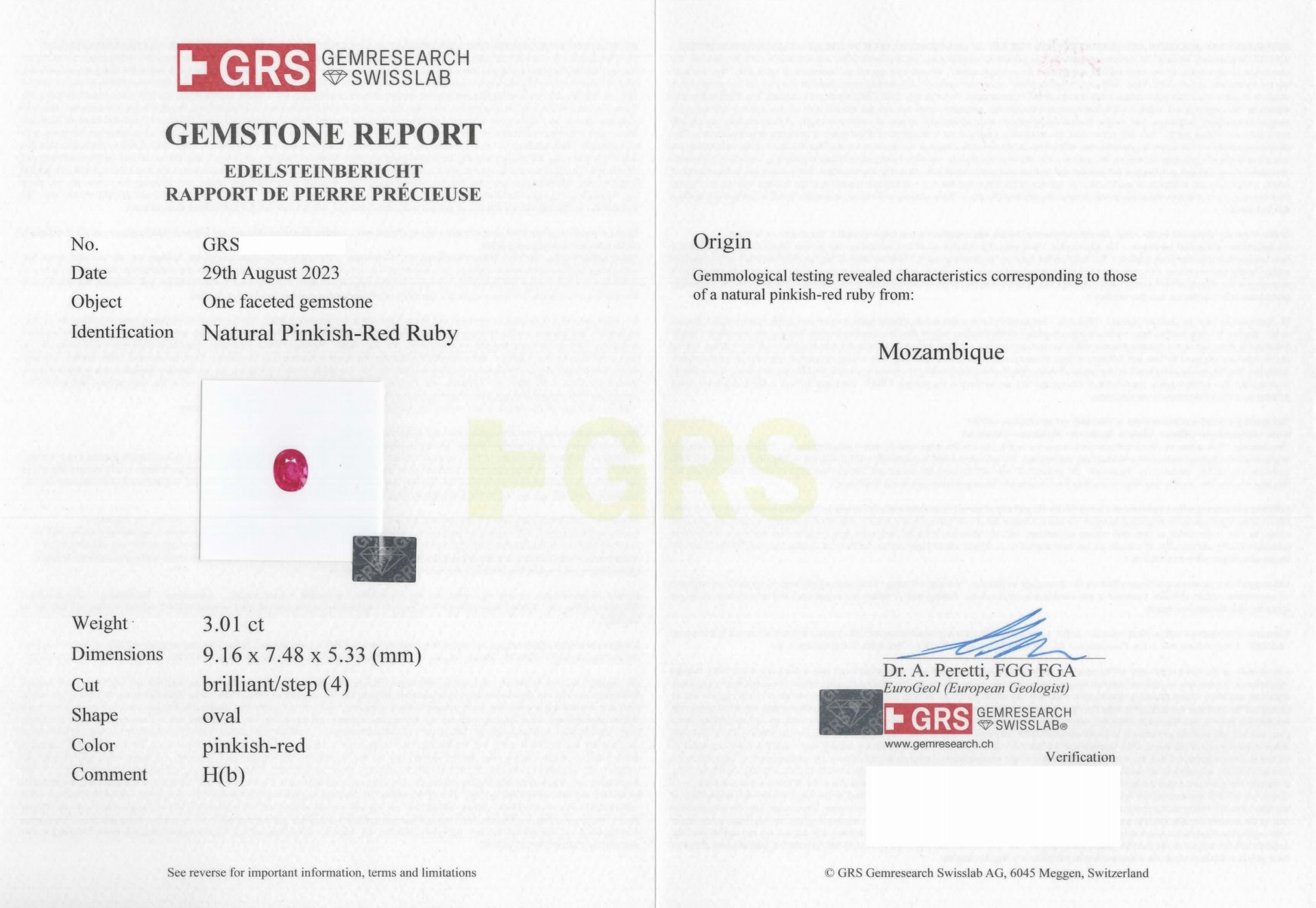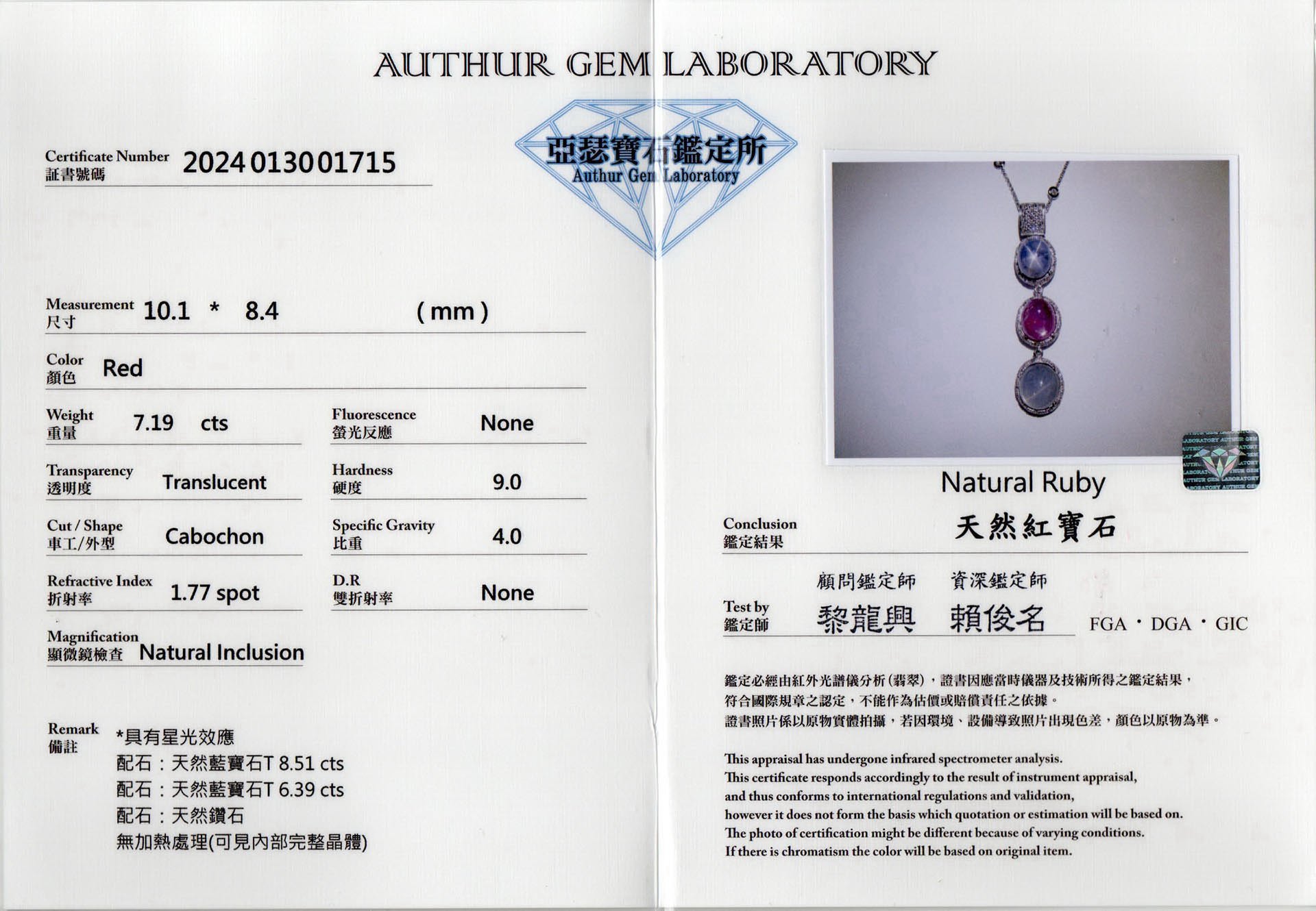 亞瑟寶石鑑定書(開新視窗)