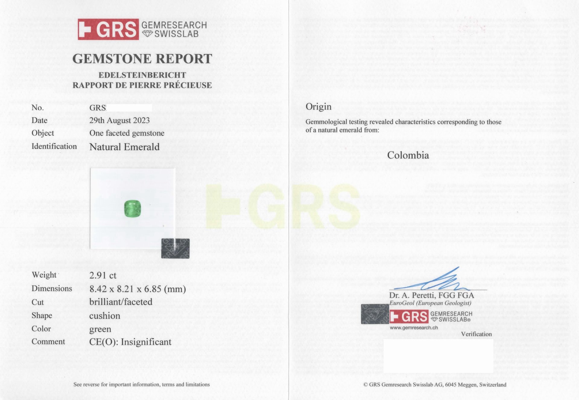 亞瑟寶石鑑定書(開新視窗)