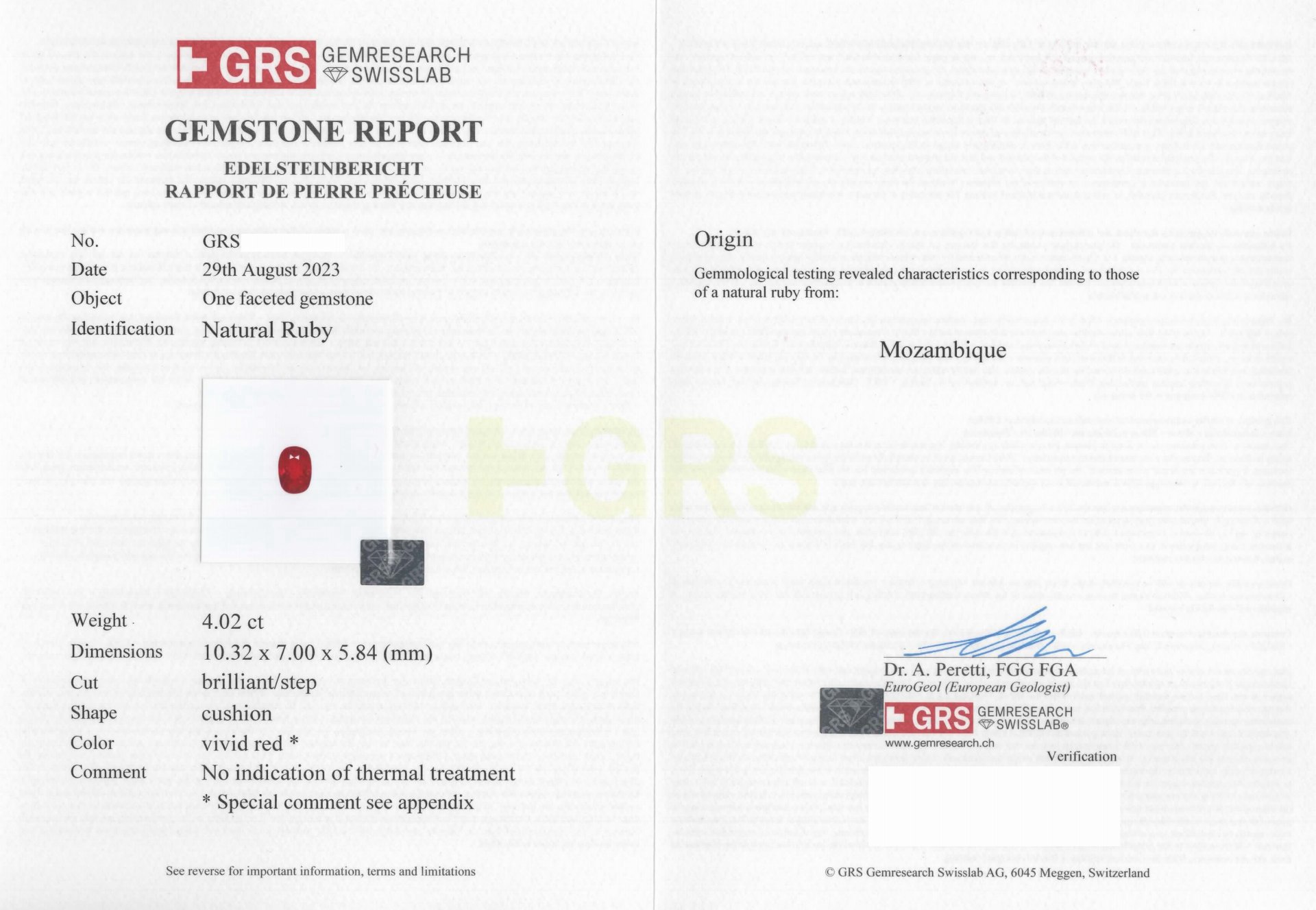 主石:天然紅寶 Unheat無燒 4.02ct