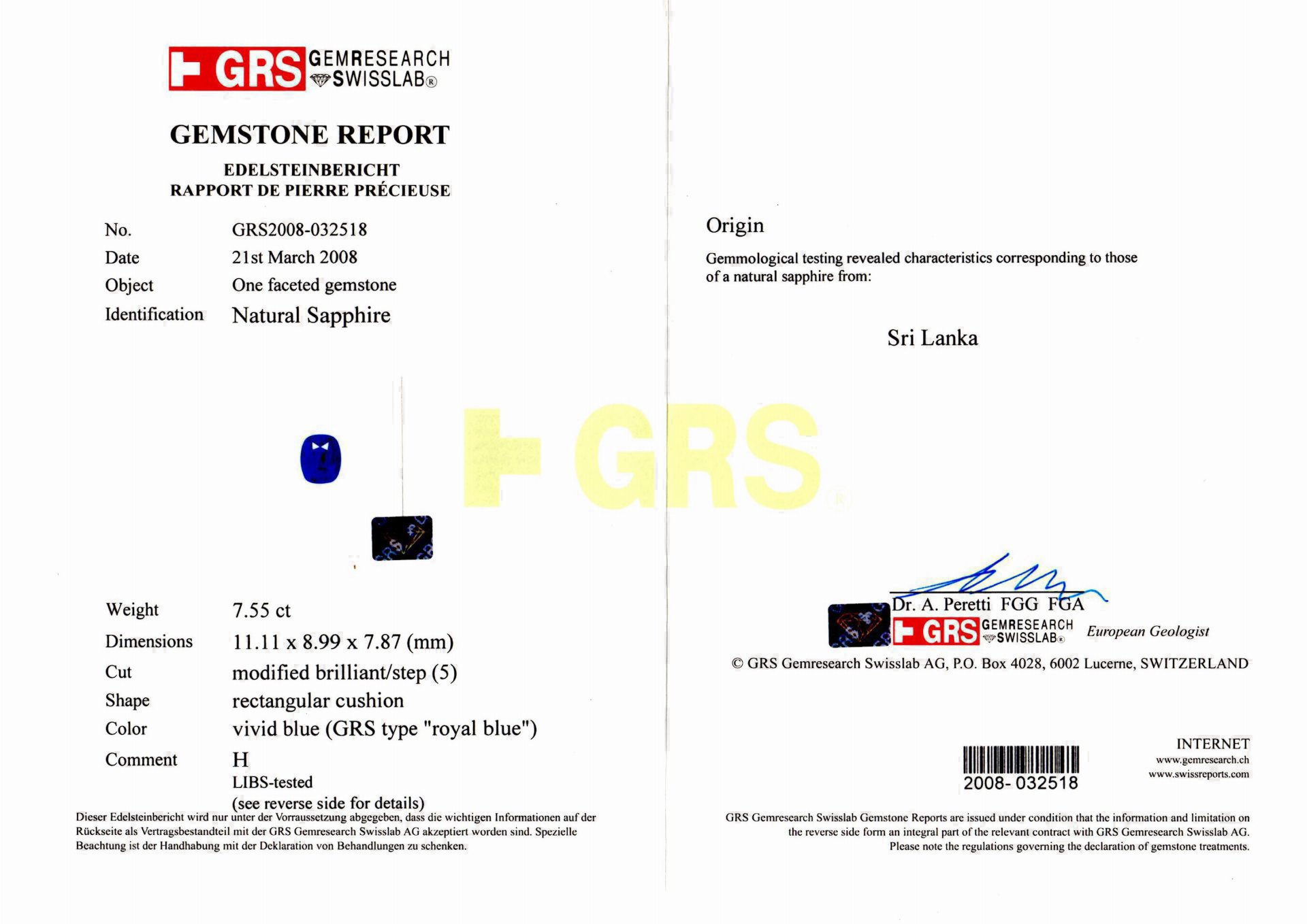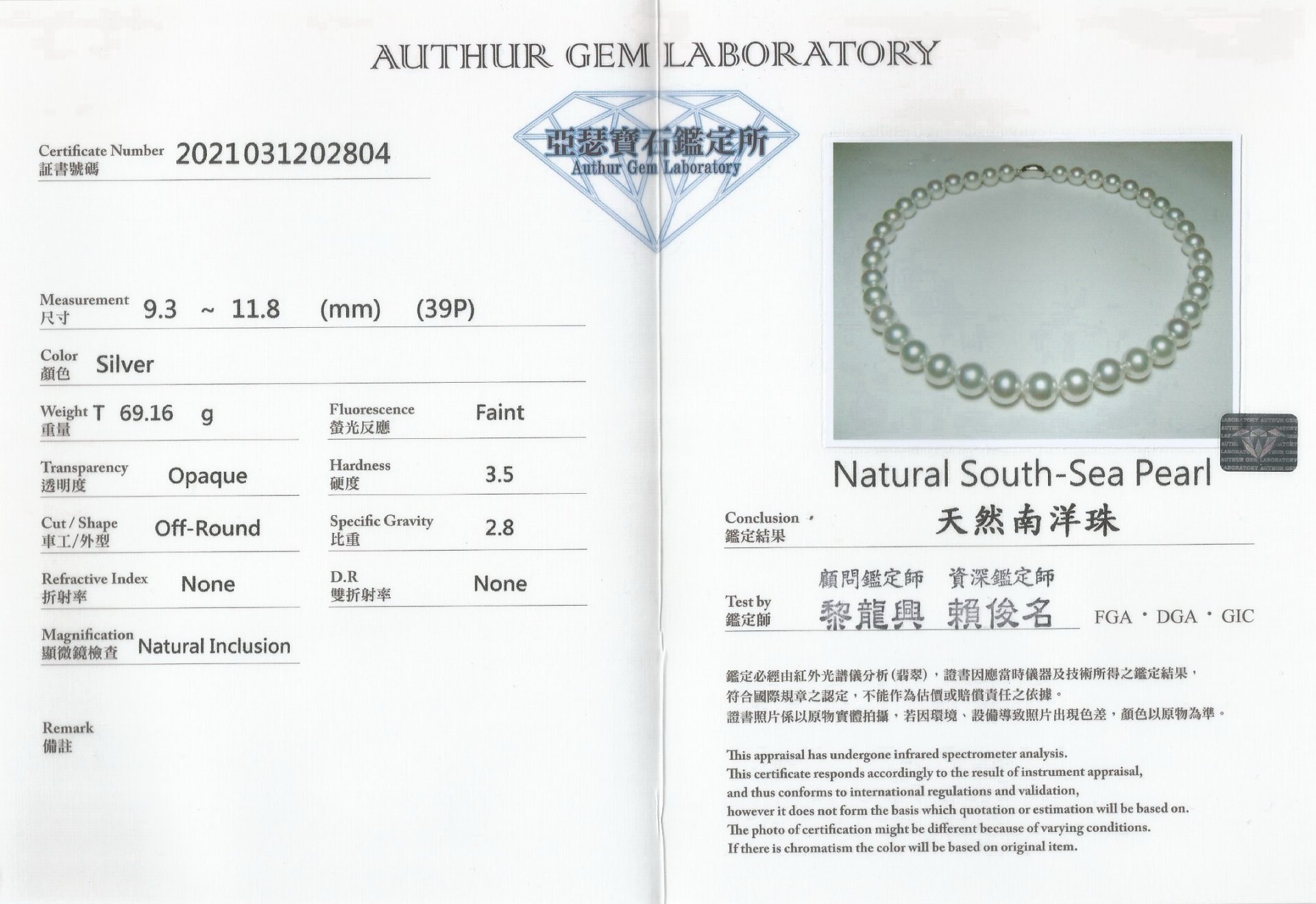 附三張鑑定證書:GRS、中國張證書、國際珠寶證