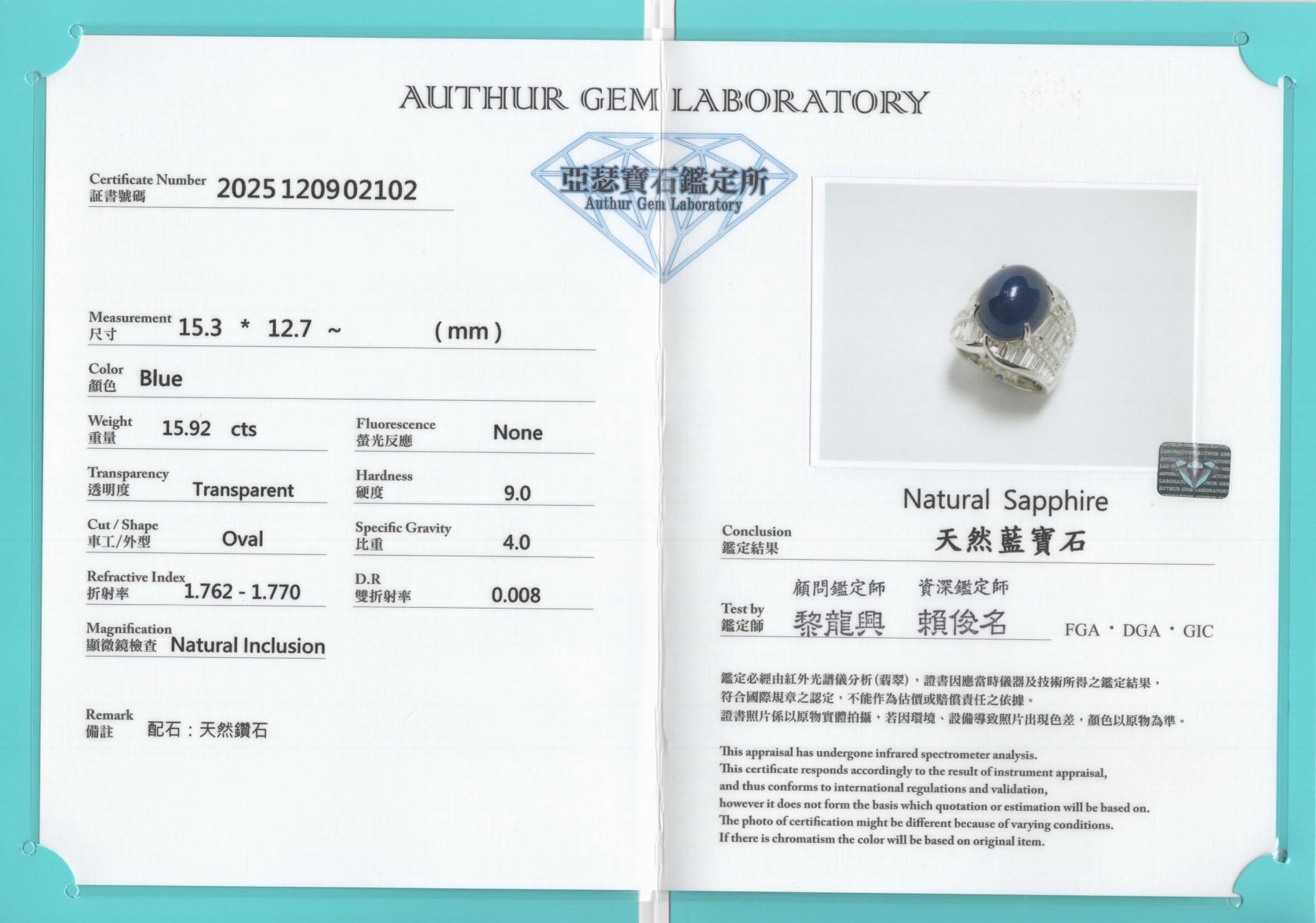 天然藍寶戒指 15.92ct