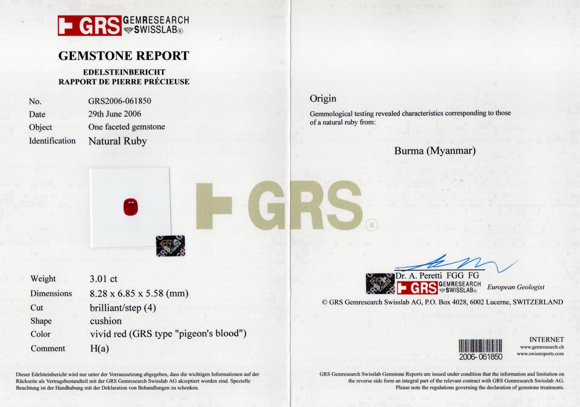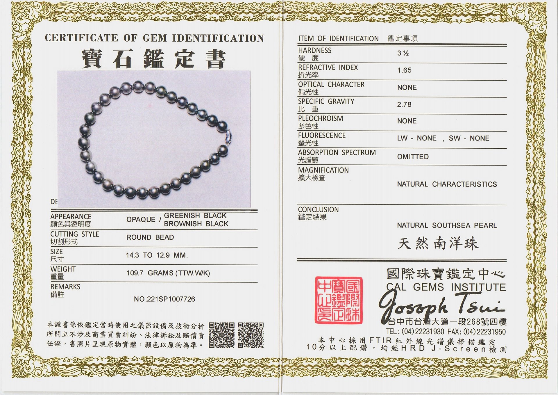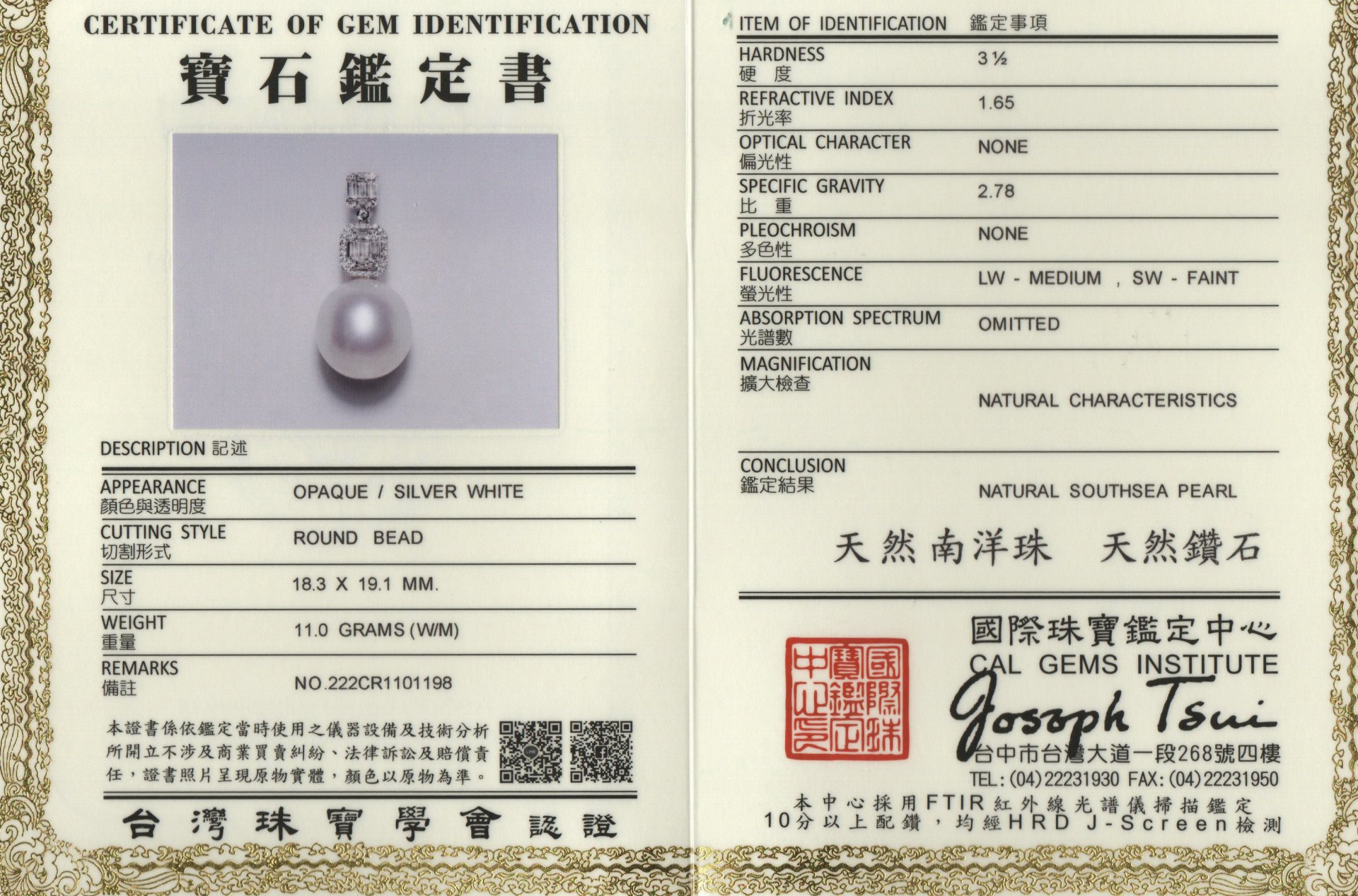 亞瑟寶石鑑定書(開新視窗)