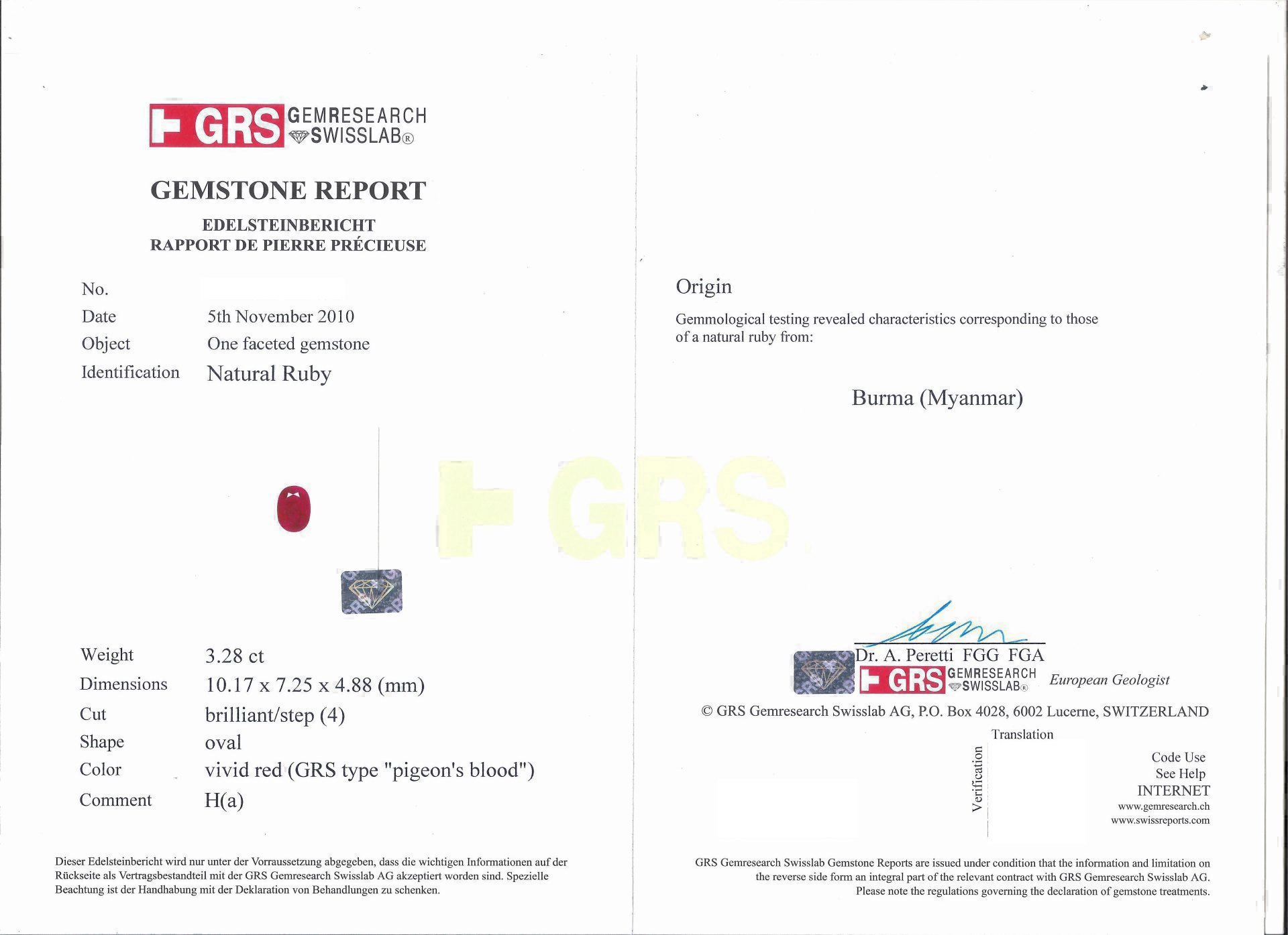 天然紅寶戒指 3.28ct