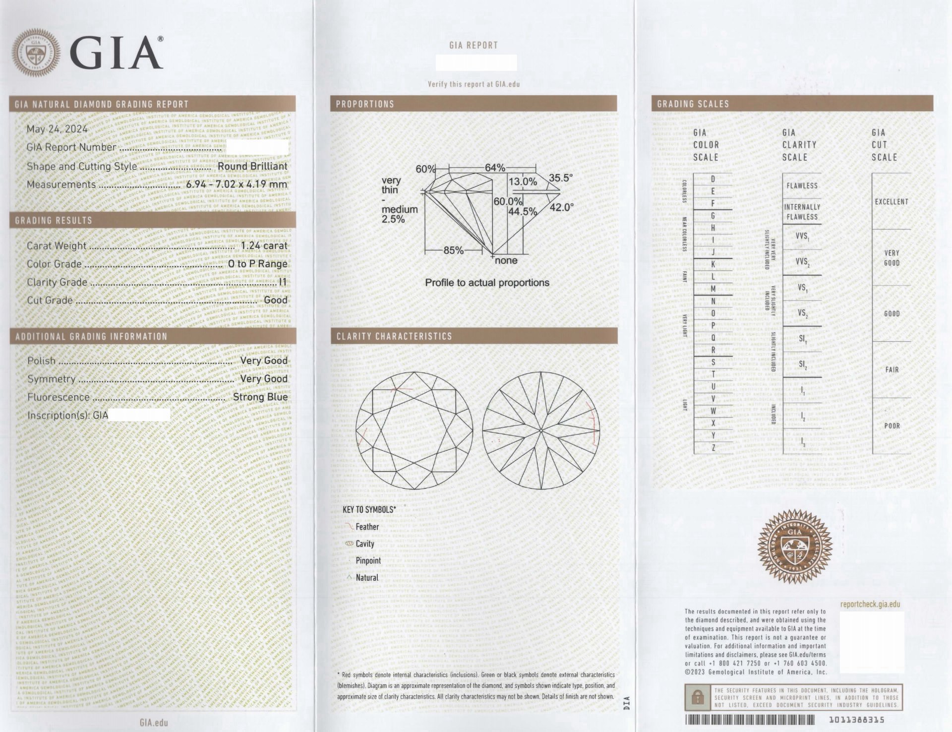 主石:天然鑽石1.24克拉