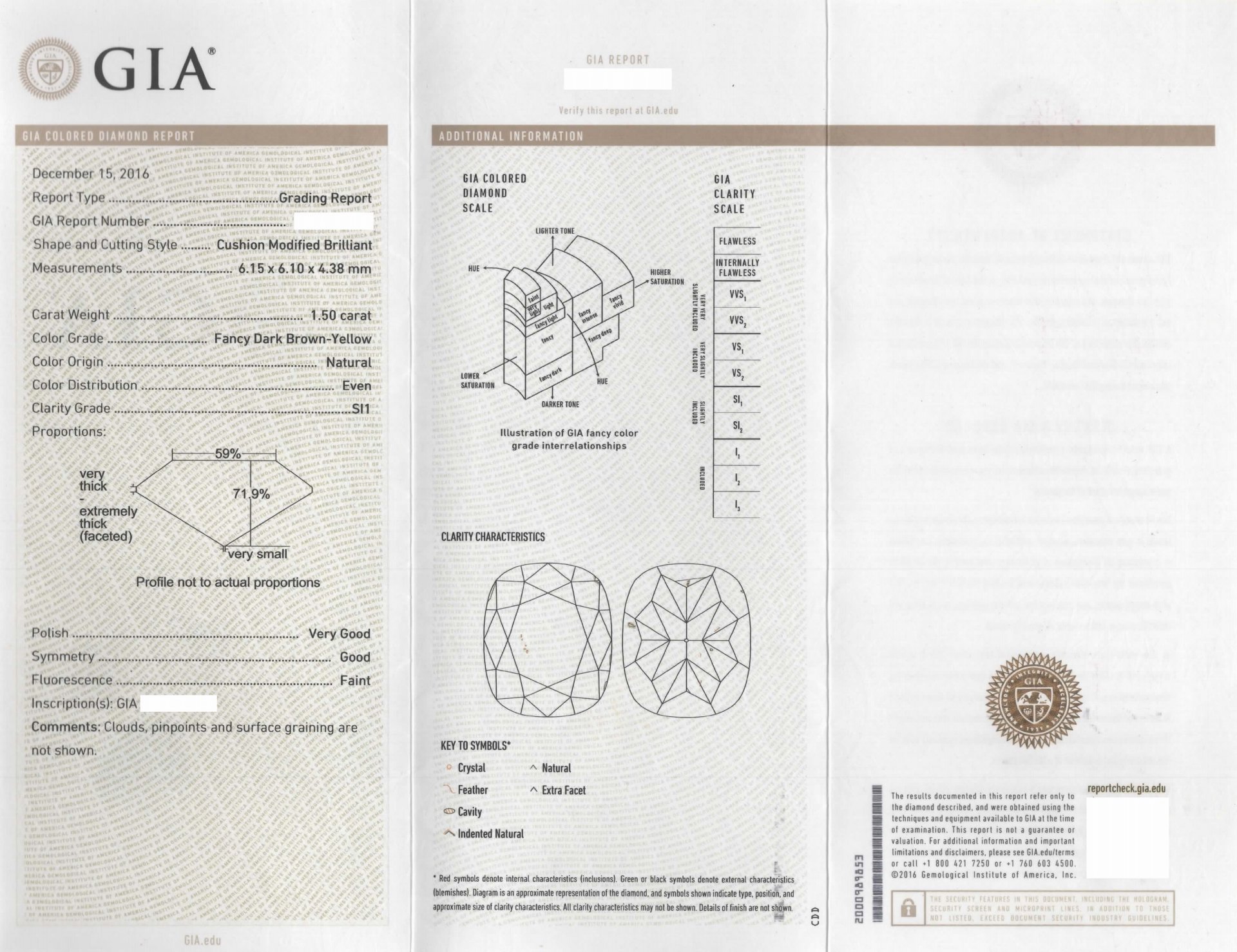 GIA顏色:Fancy Dark Brown-Yellow