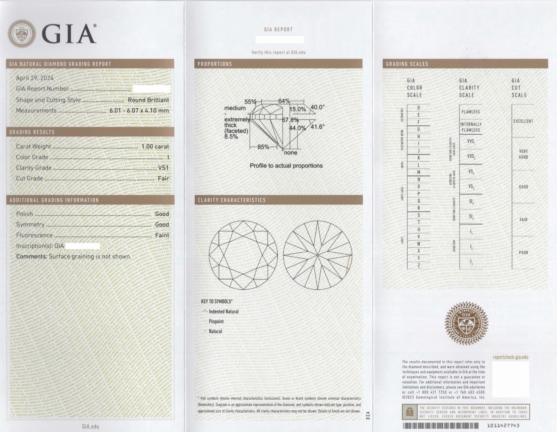 GIA1.01CT, SI2/F, 3EX, 無螢光