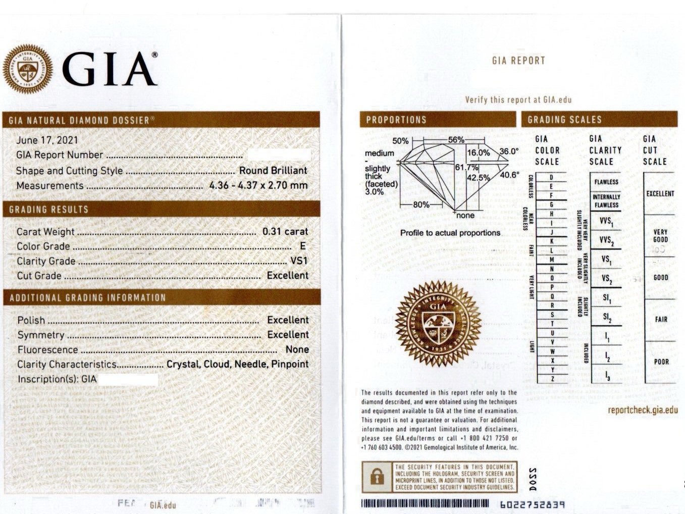 0.31ct (F/VS2, EX ,3EX, None),附實體證書