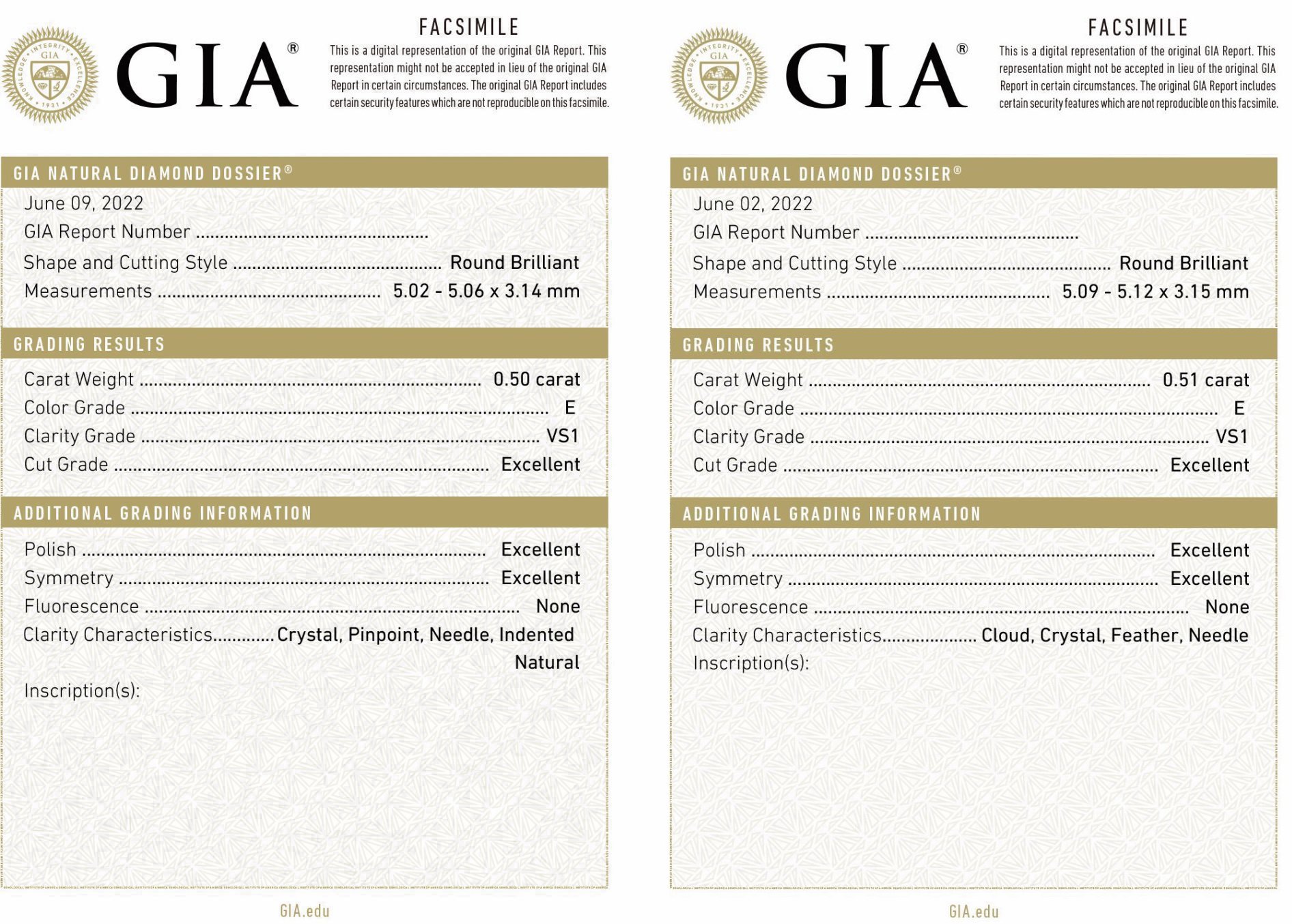 0.51CT E/VS1/3EX/NONE H&A