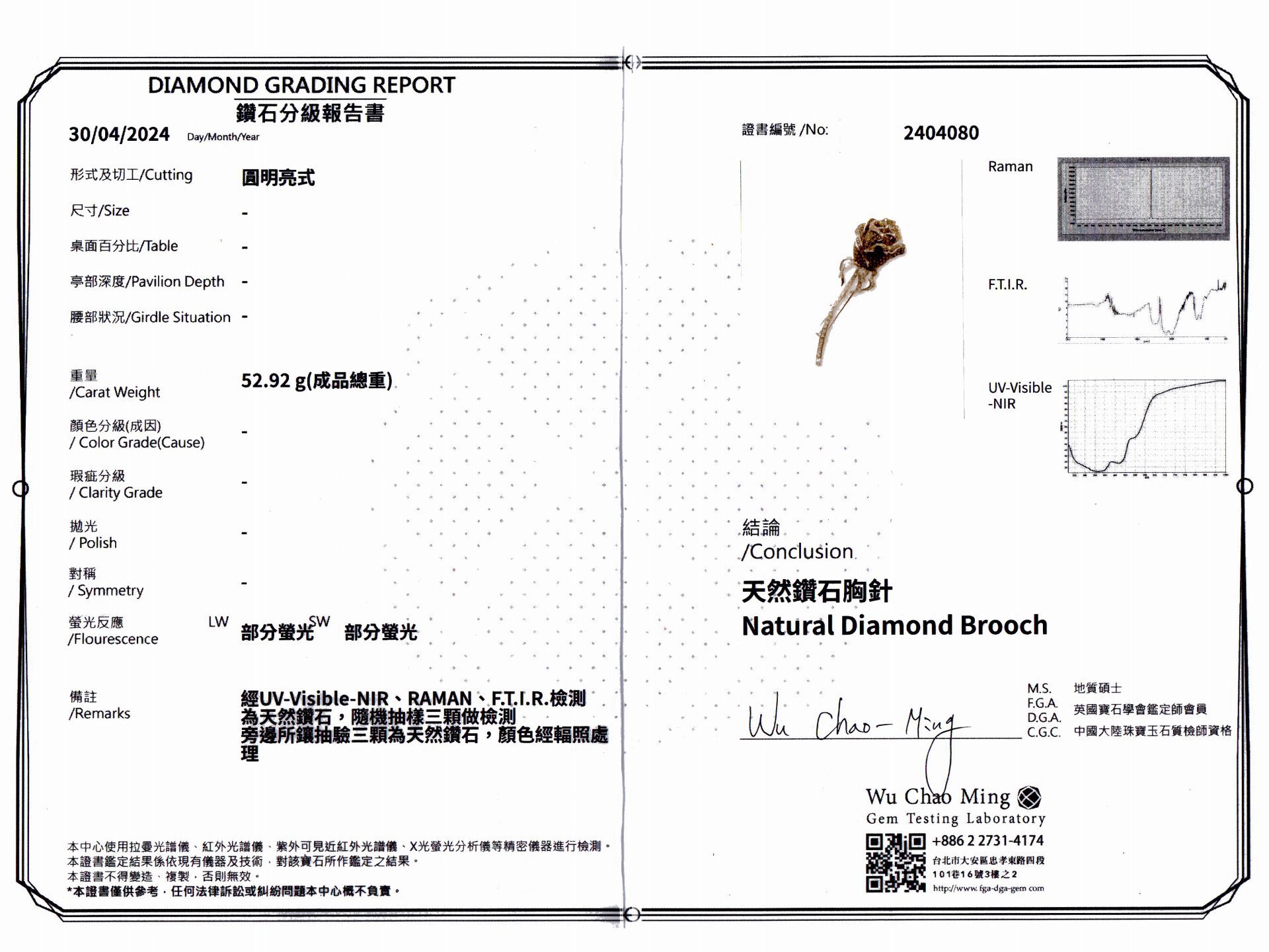 部分棕色鑽石顏色有經過高溫高壓優化處理,其餘均為天然鑽石。
