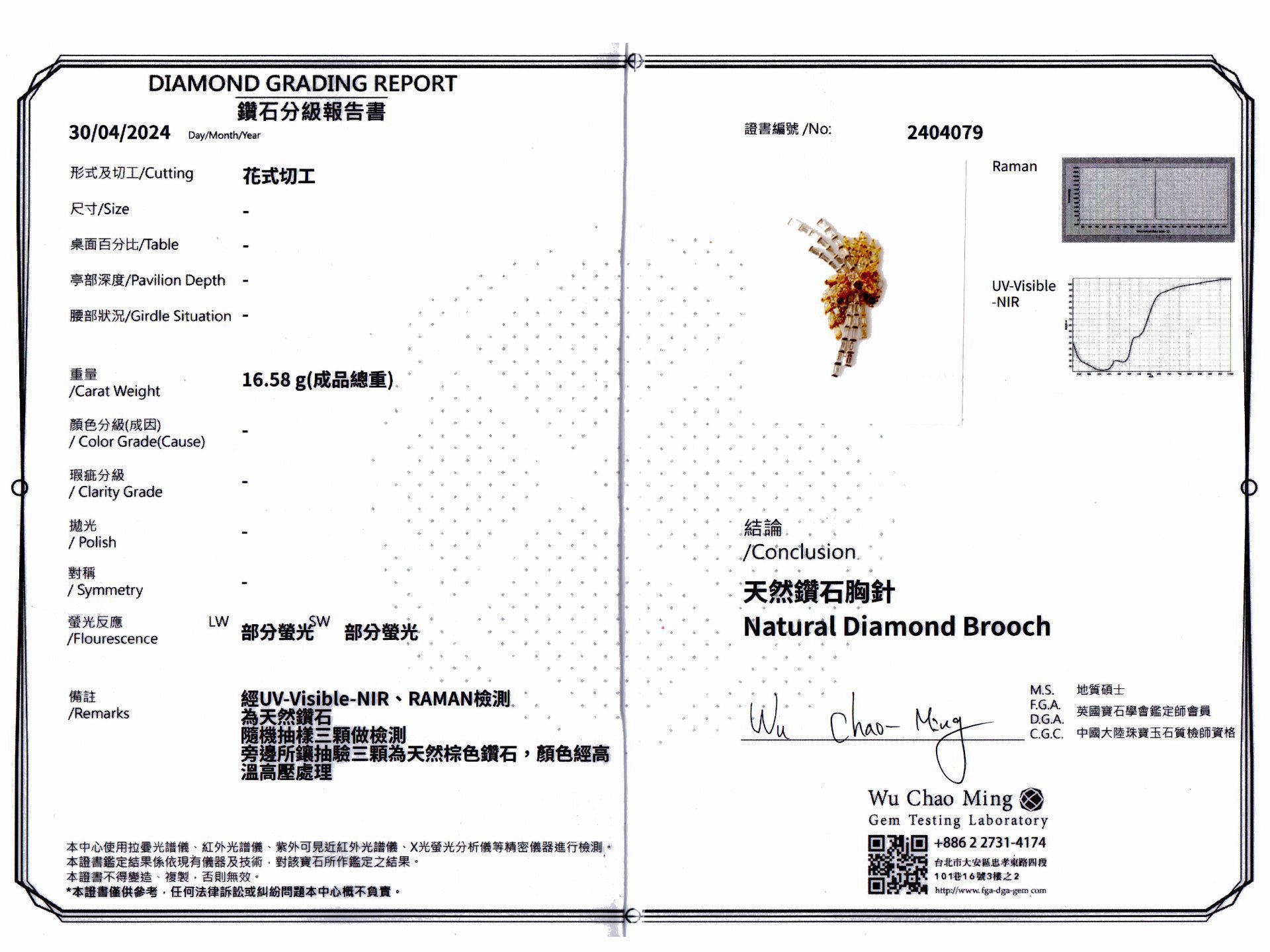 部分棕色鑽石顏色有經過高溫高壓優化處理,其餘均為天然鑽石。