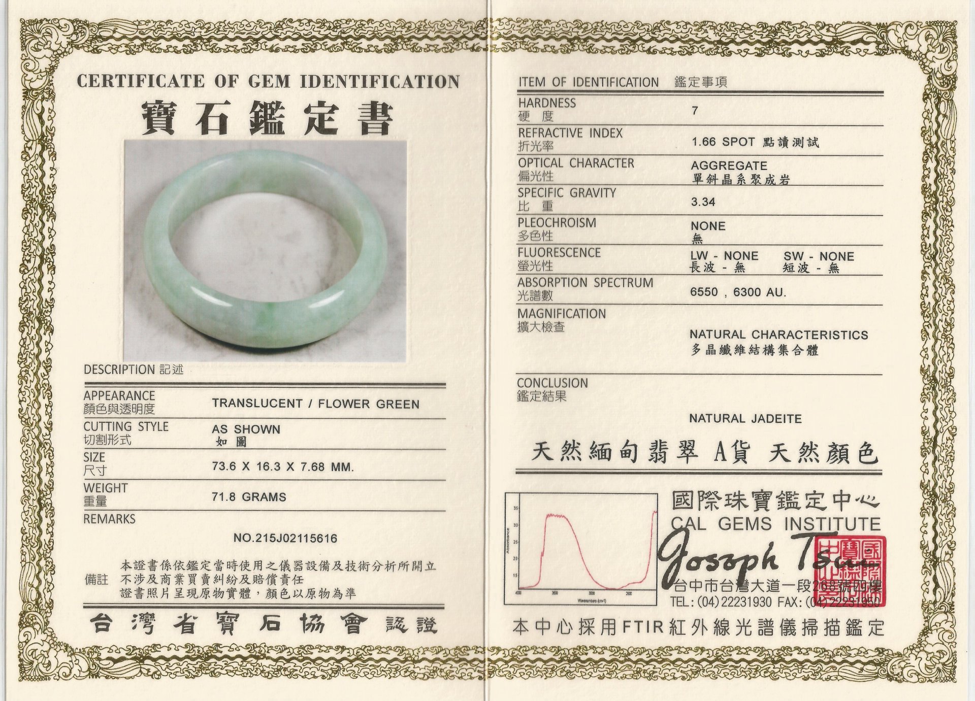 亞瑟寶石鑑定書(開新視窗)