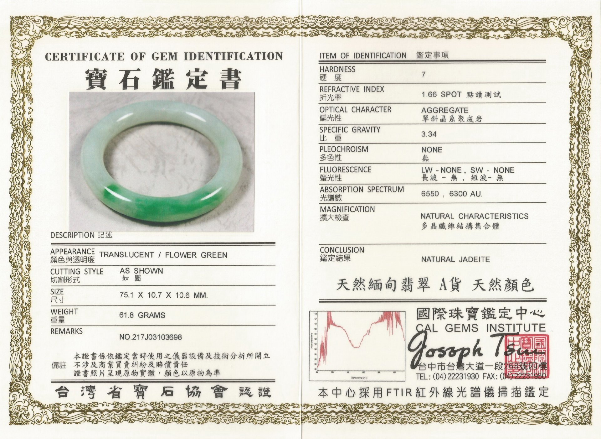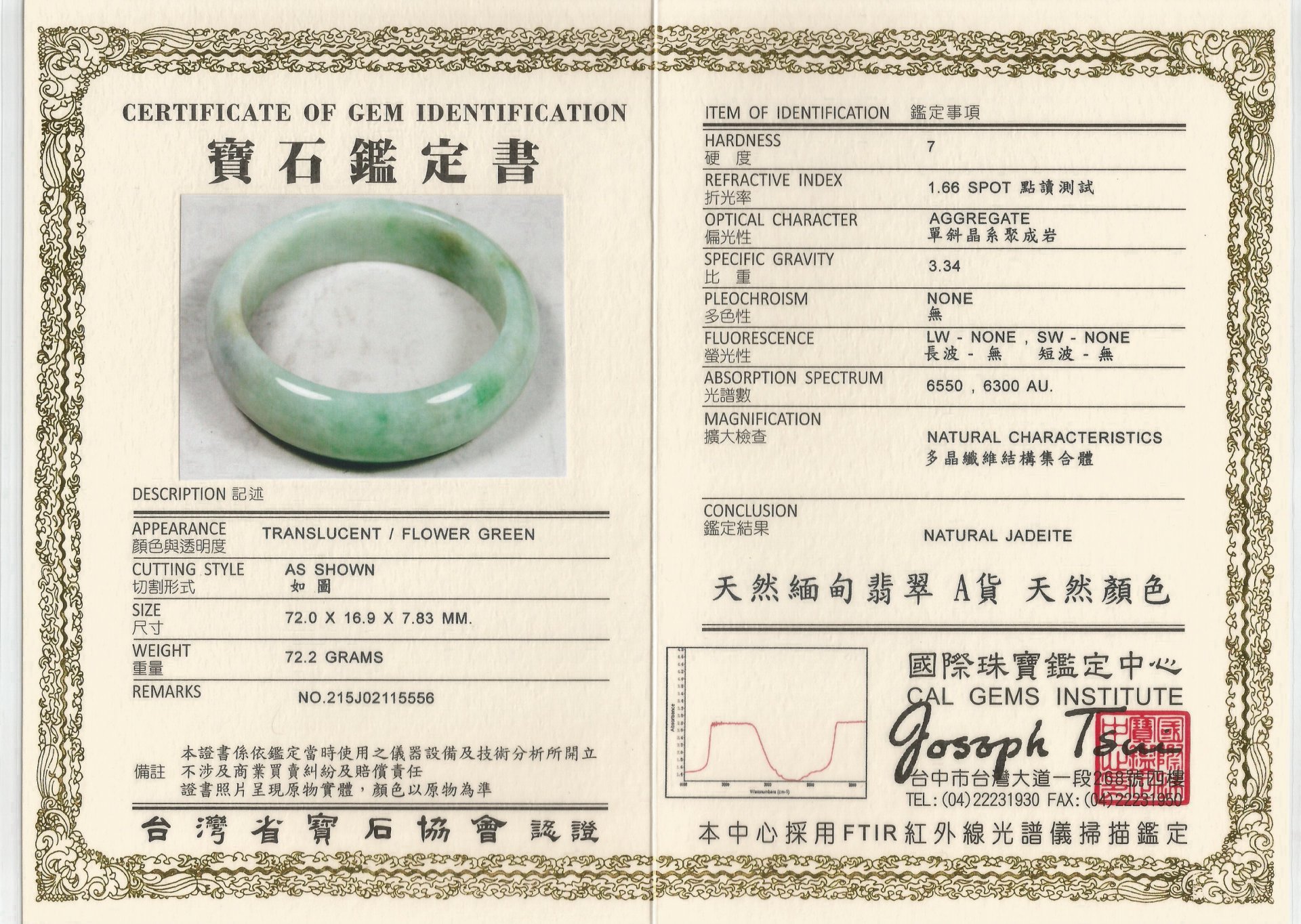 亞瑟寶石鑑定書(開新視窗)