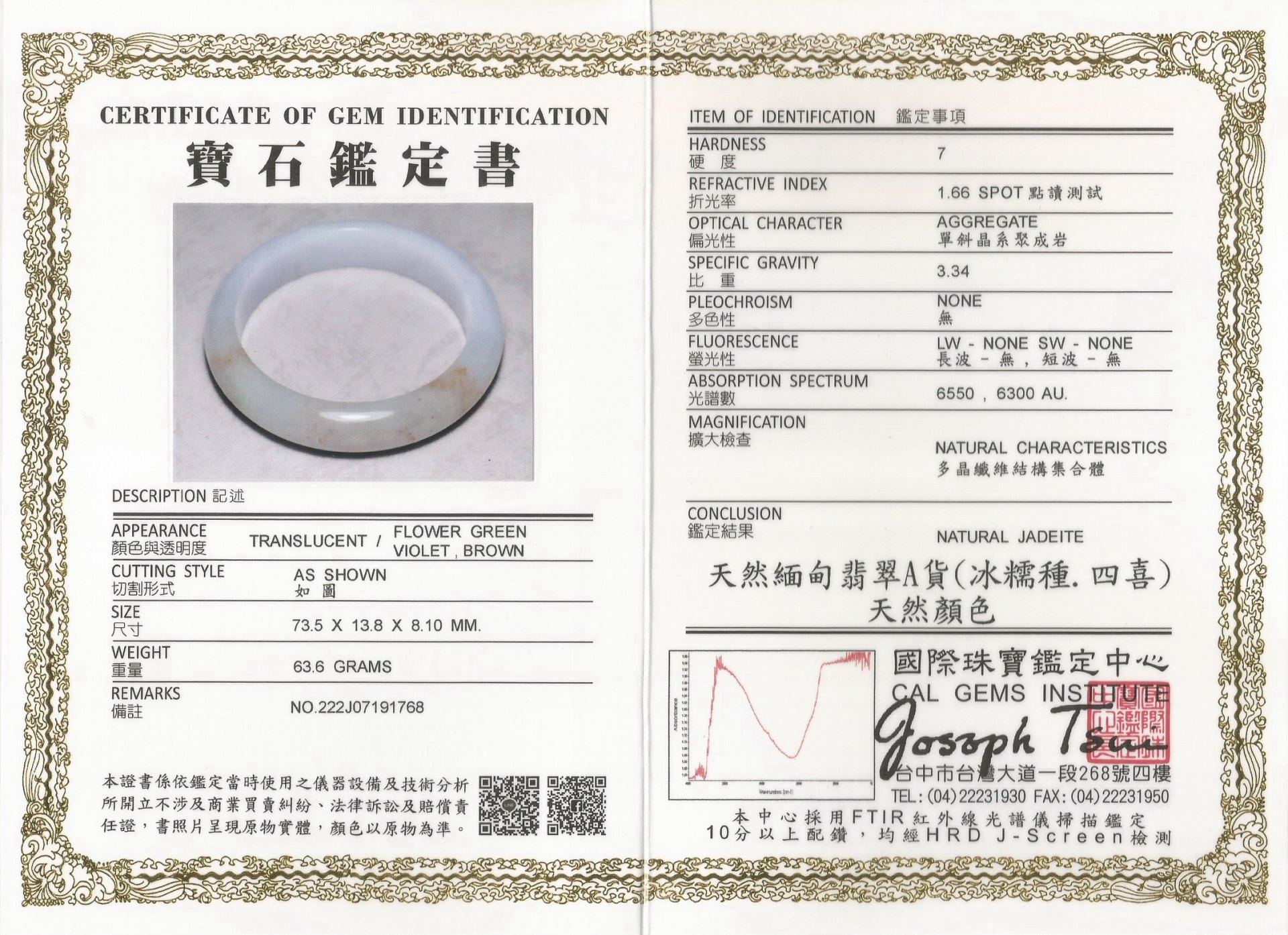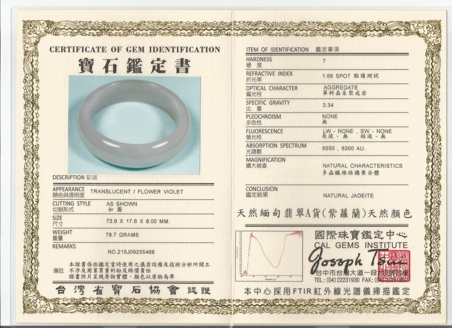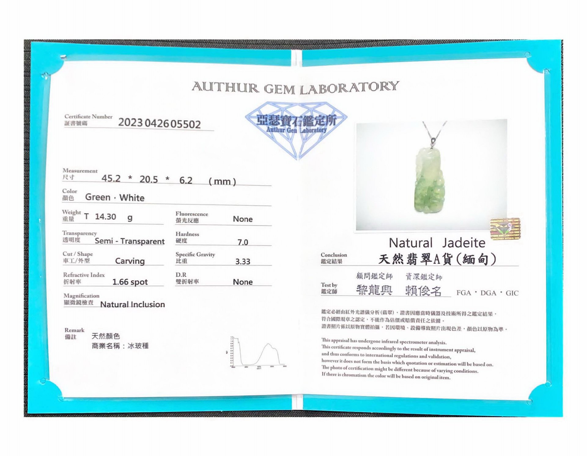 亞瑟寶石鑑定書(開新視窗)