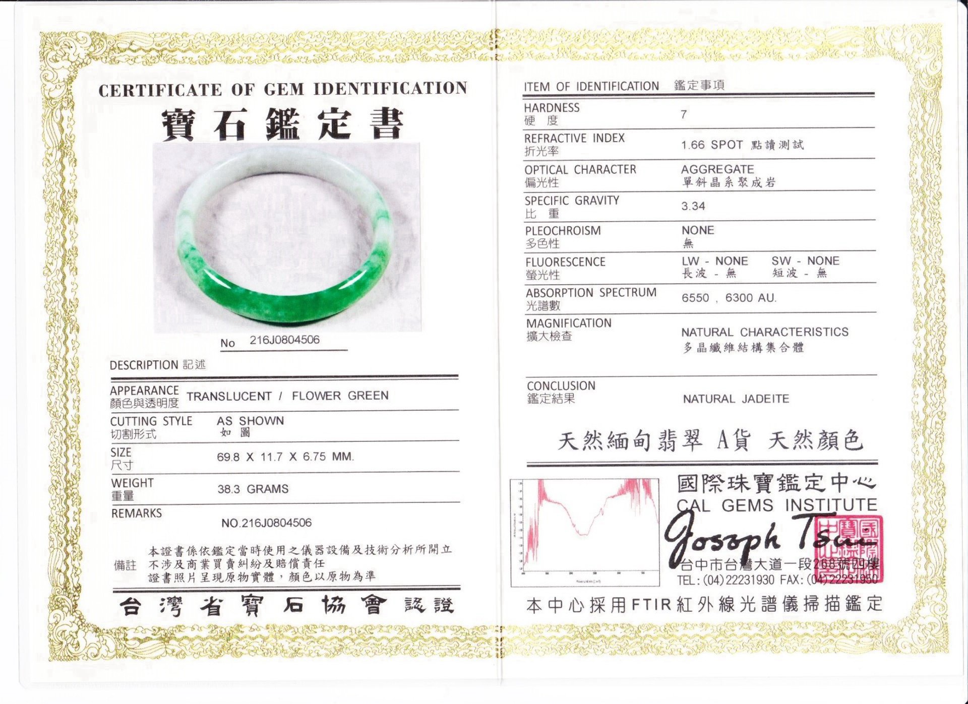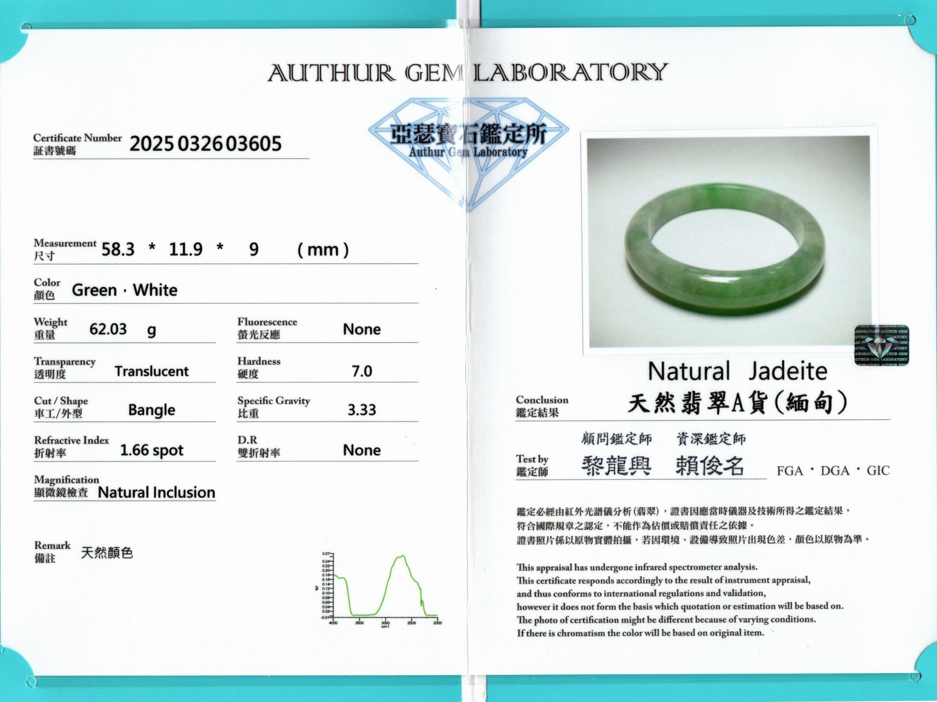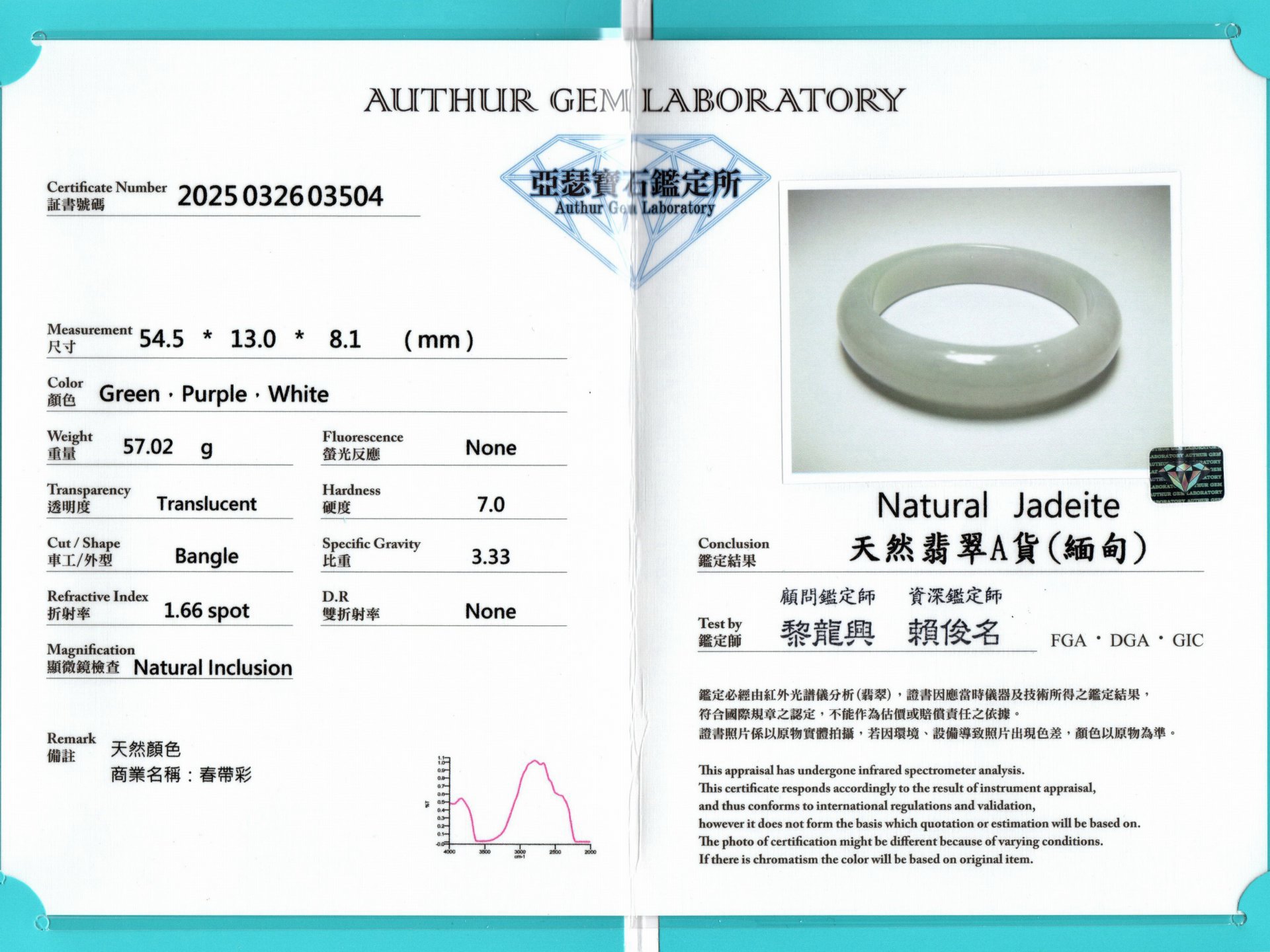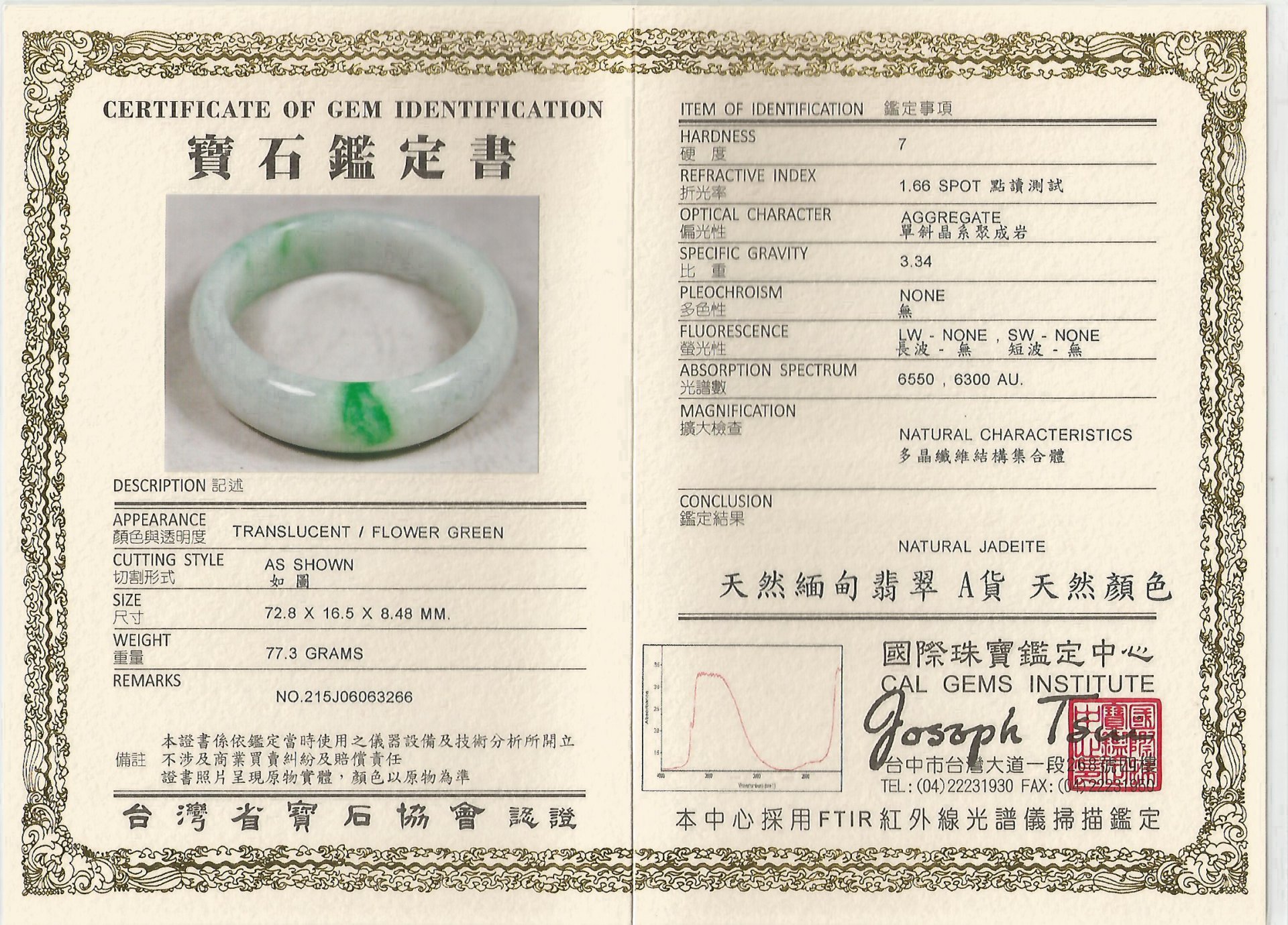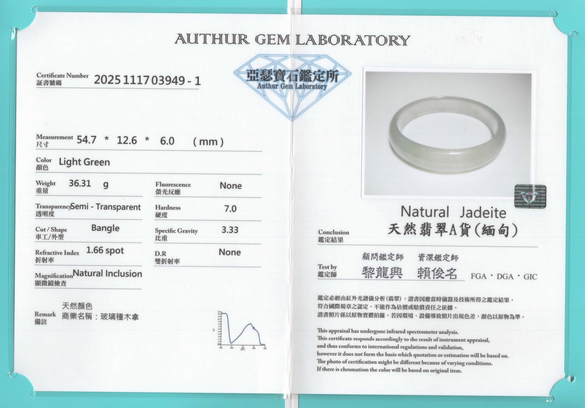 亞瑟寶石鑑定書(開新視窗)