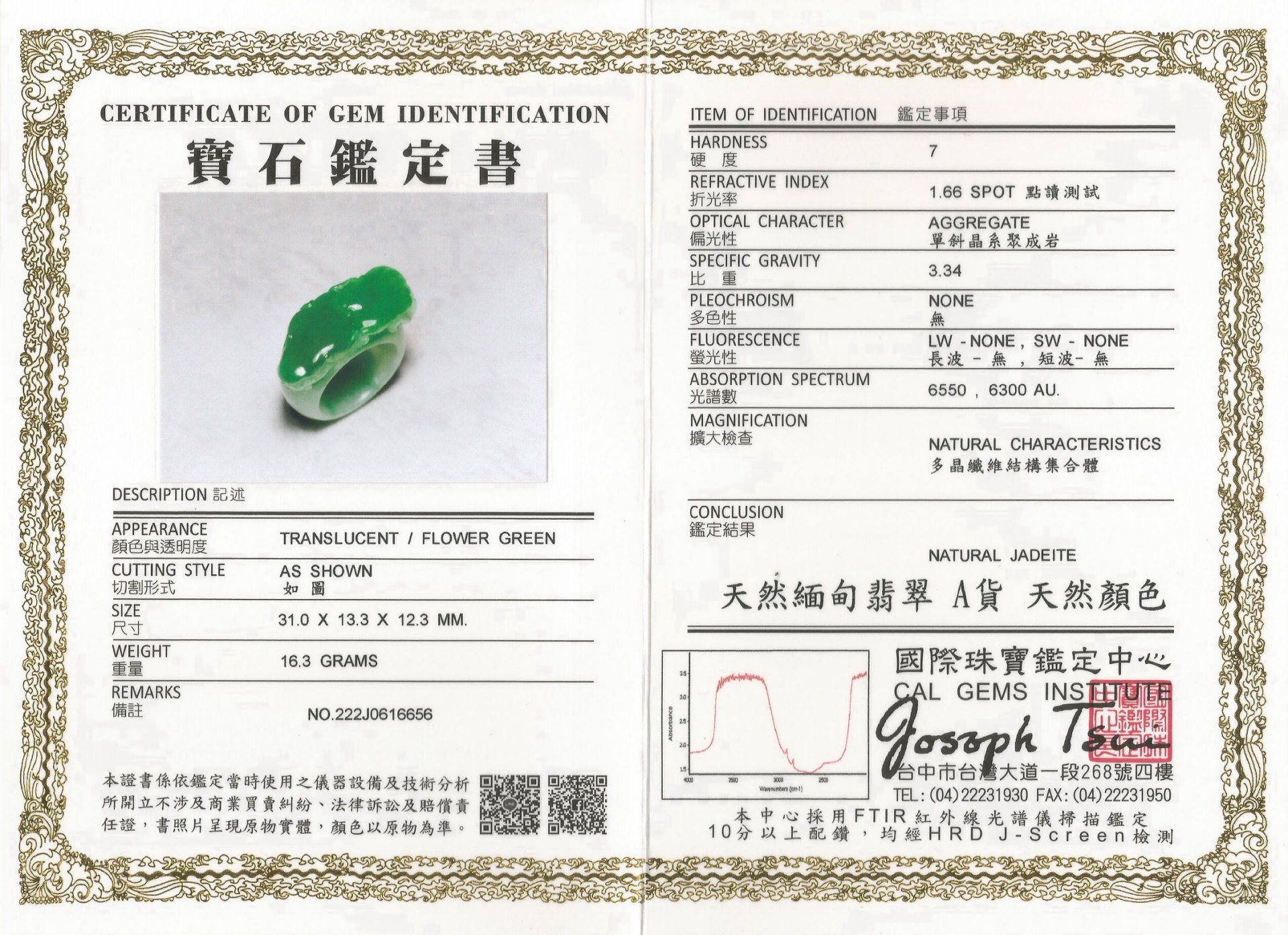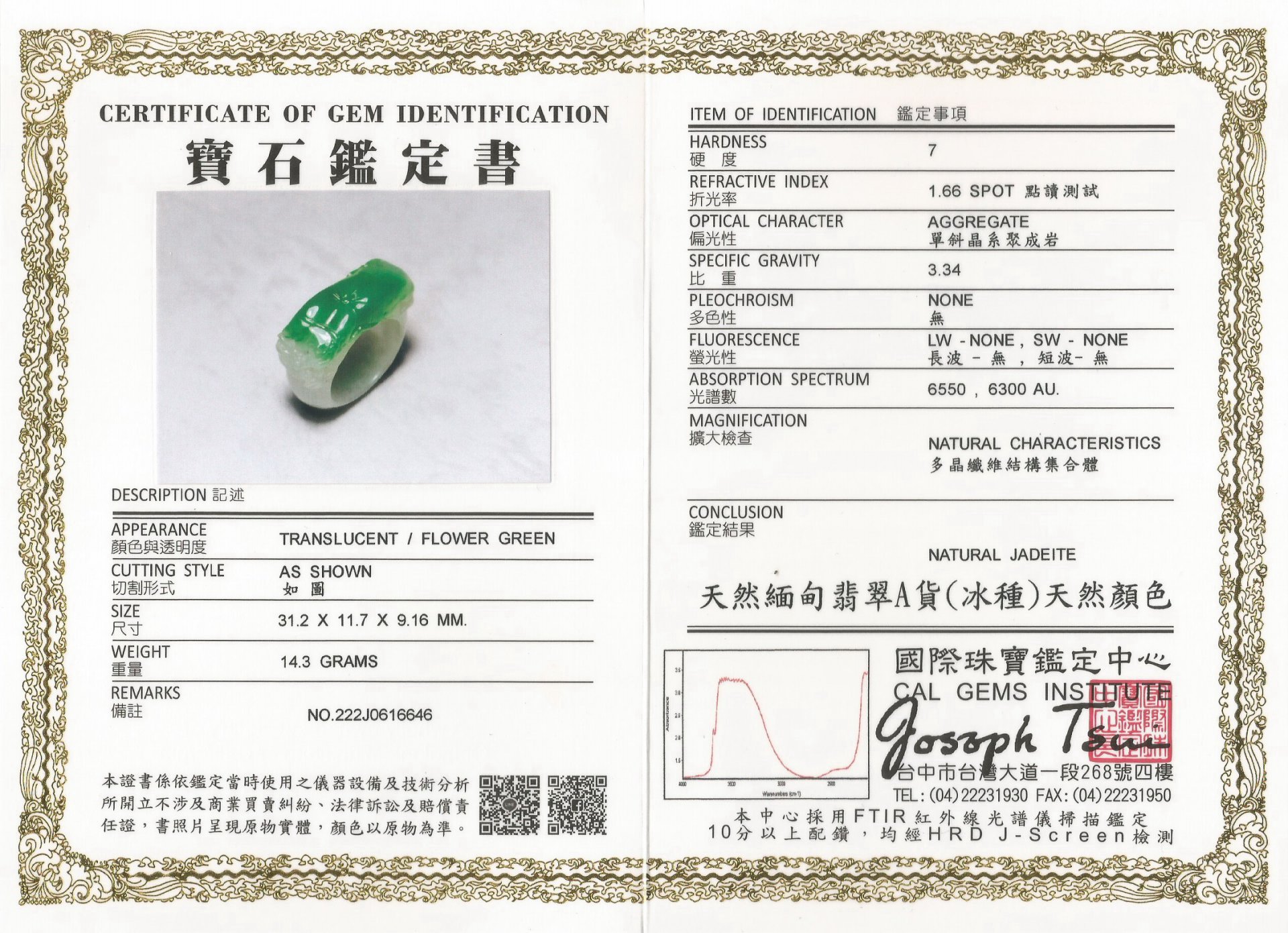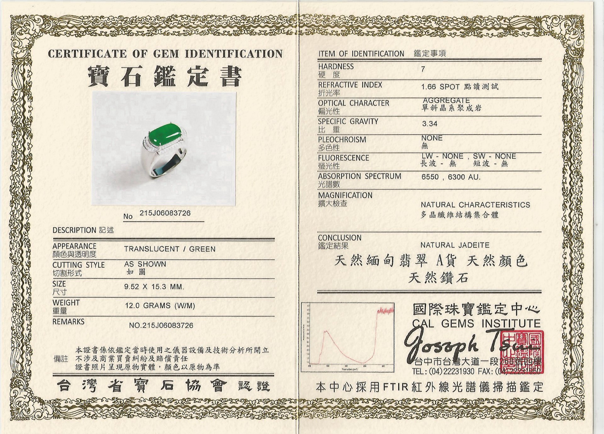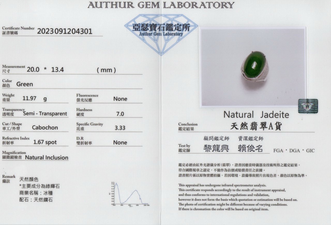 亞瑟寶石鑑定書(開新視窗)