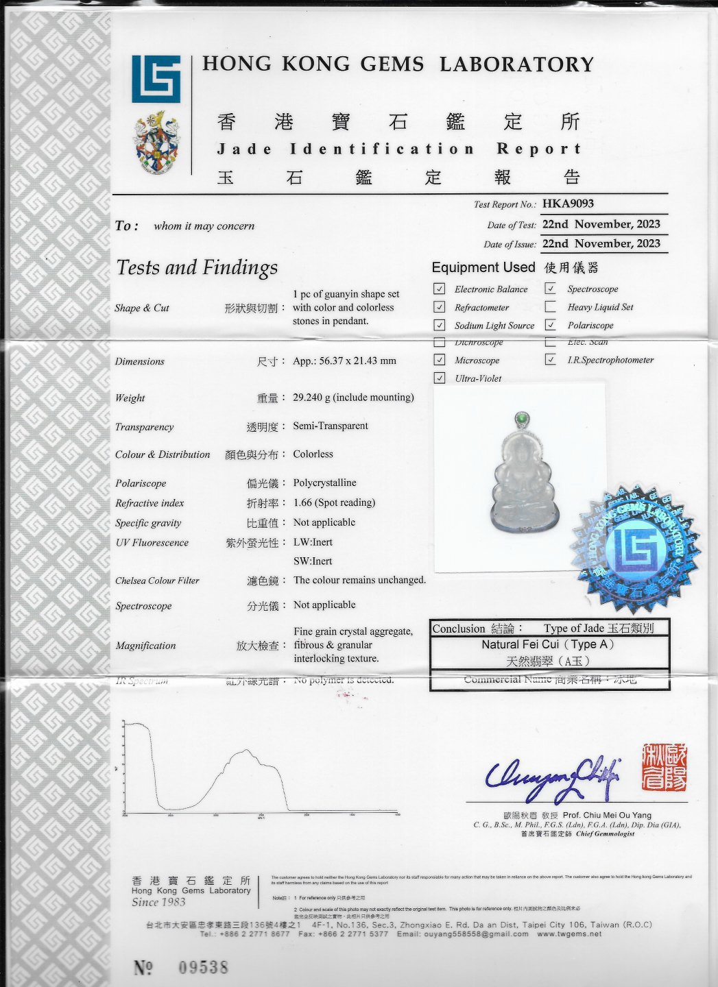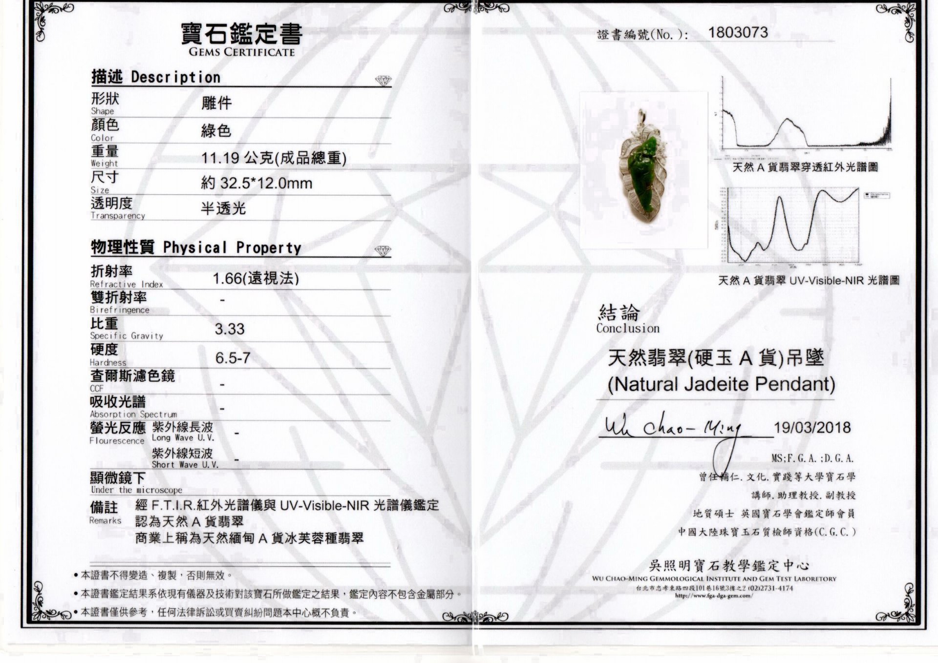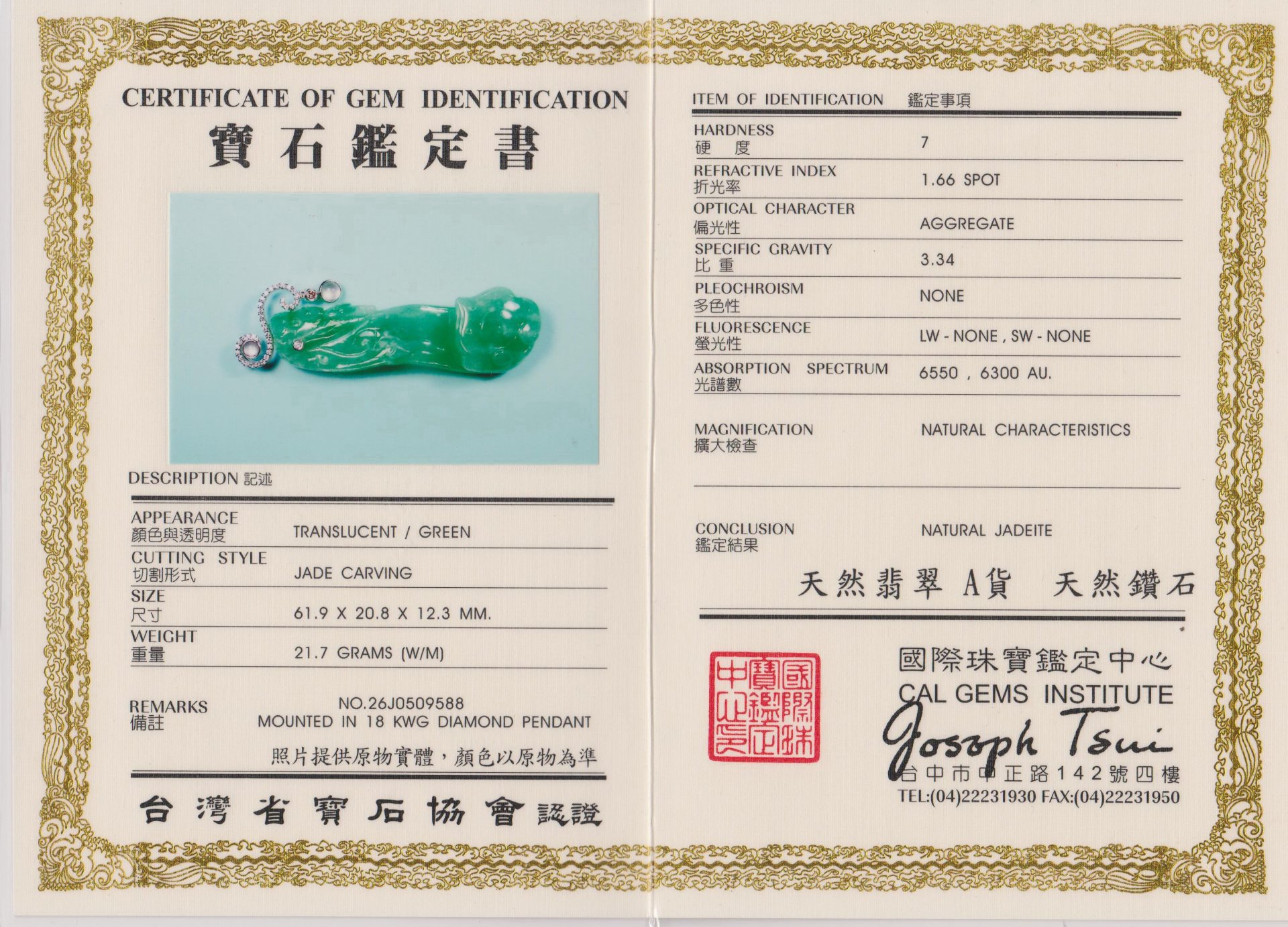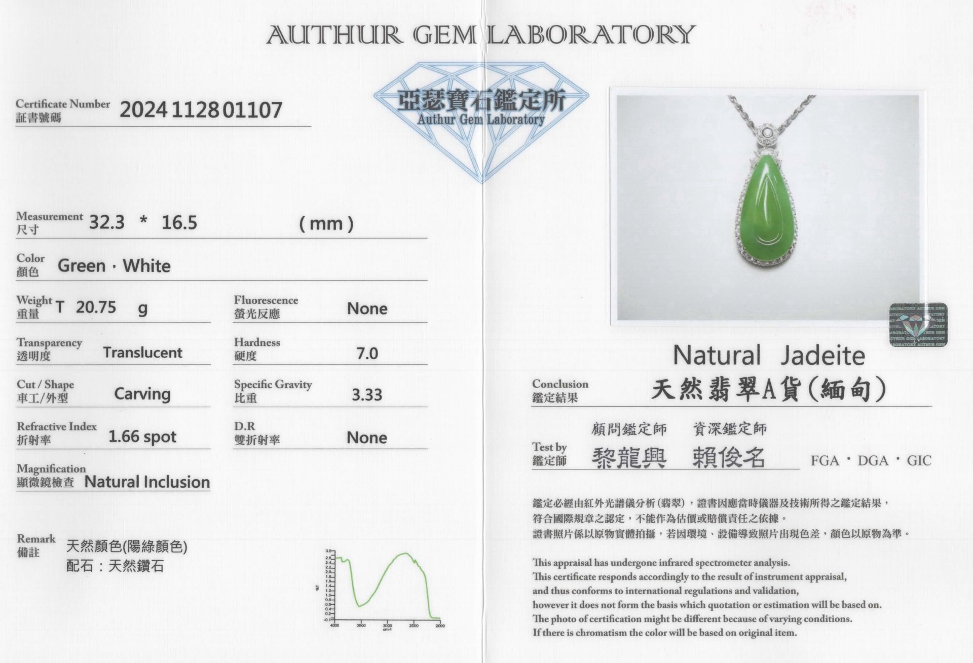 亞瑟寶石鑑定書(開新視窗)