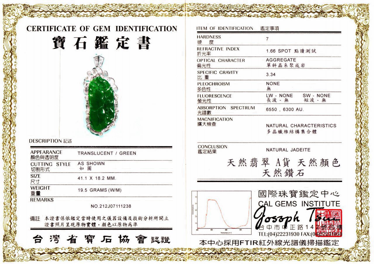 評價翡翠有"地"、"好水"、"翠得好"等術語。"地"指翡翠中其他顏色,玉少翠多為上品;