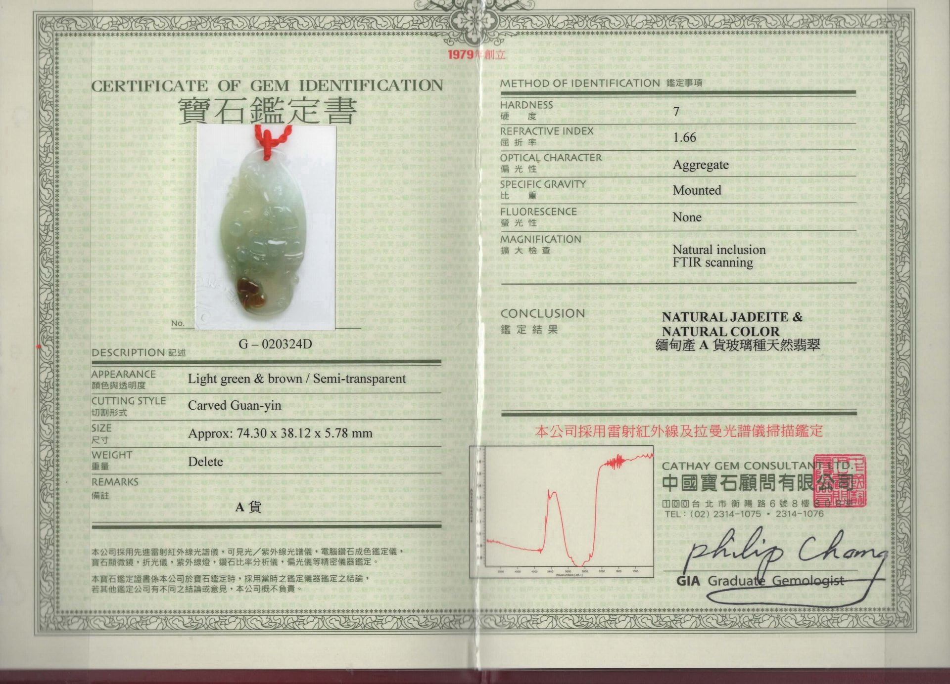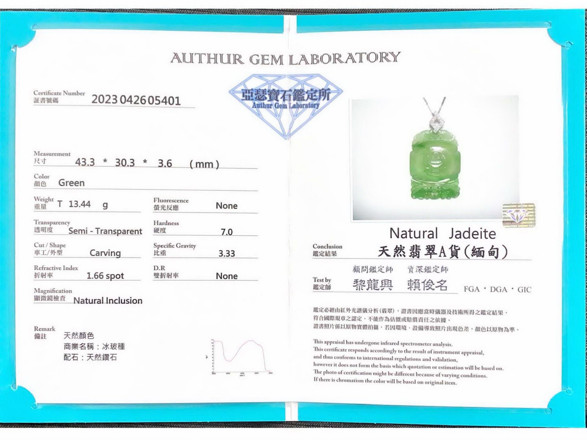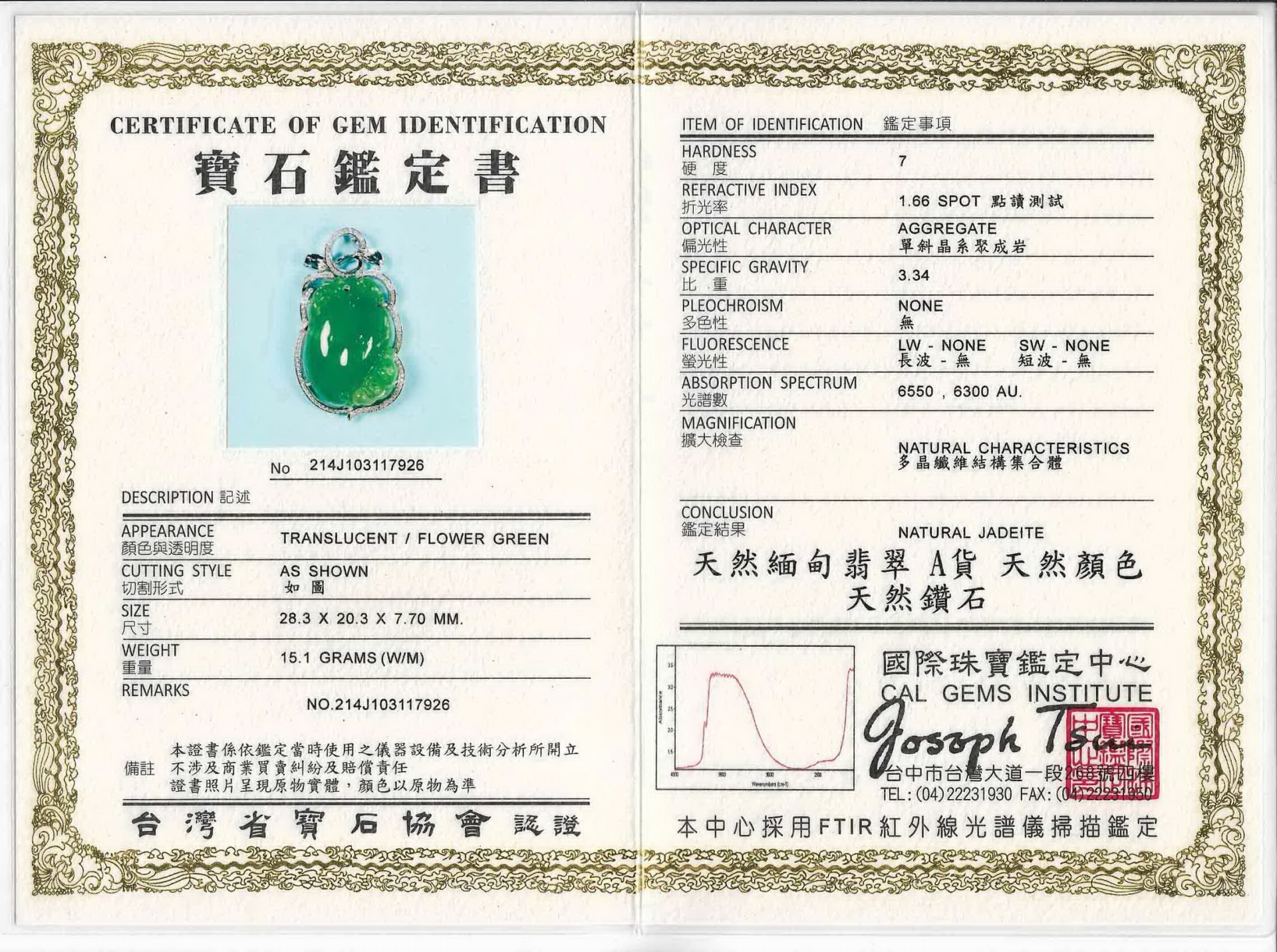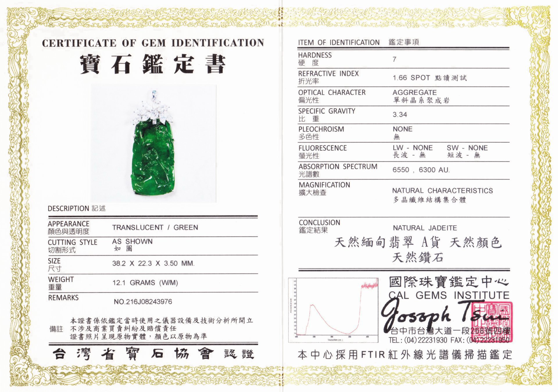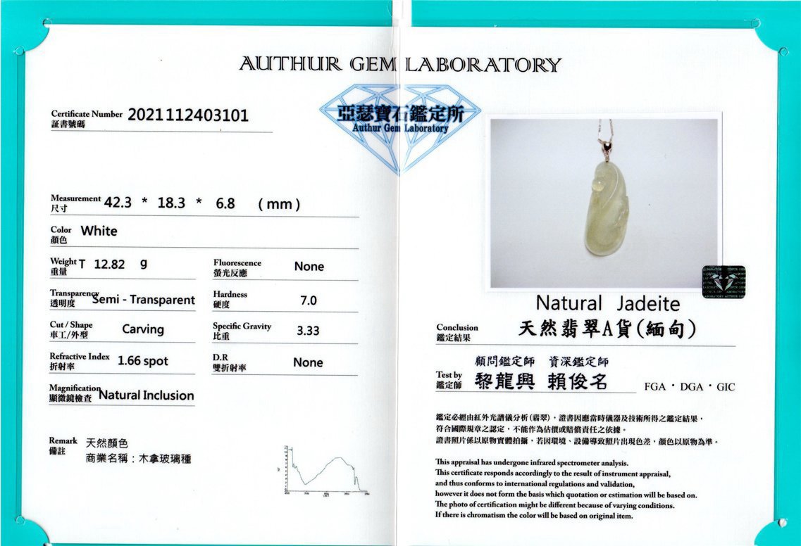 亞瑟寶石鑑定書(開新視窗)