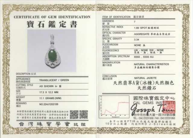 亞瑟寶石鑑定書(開新視窗)