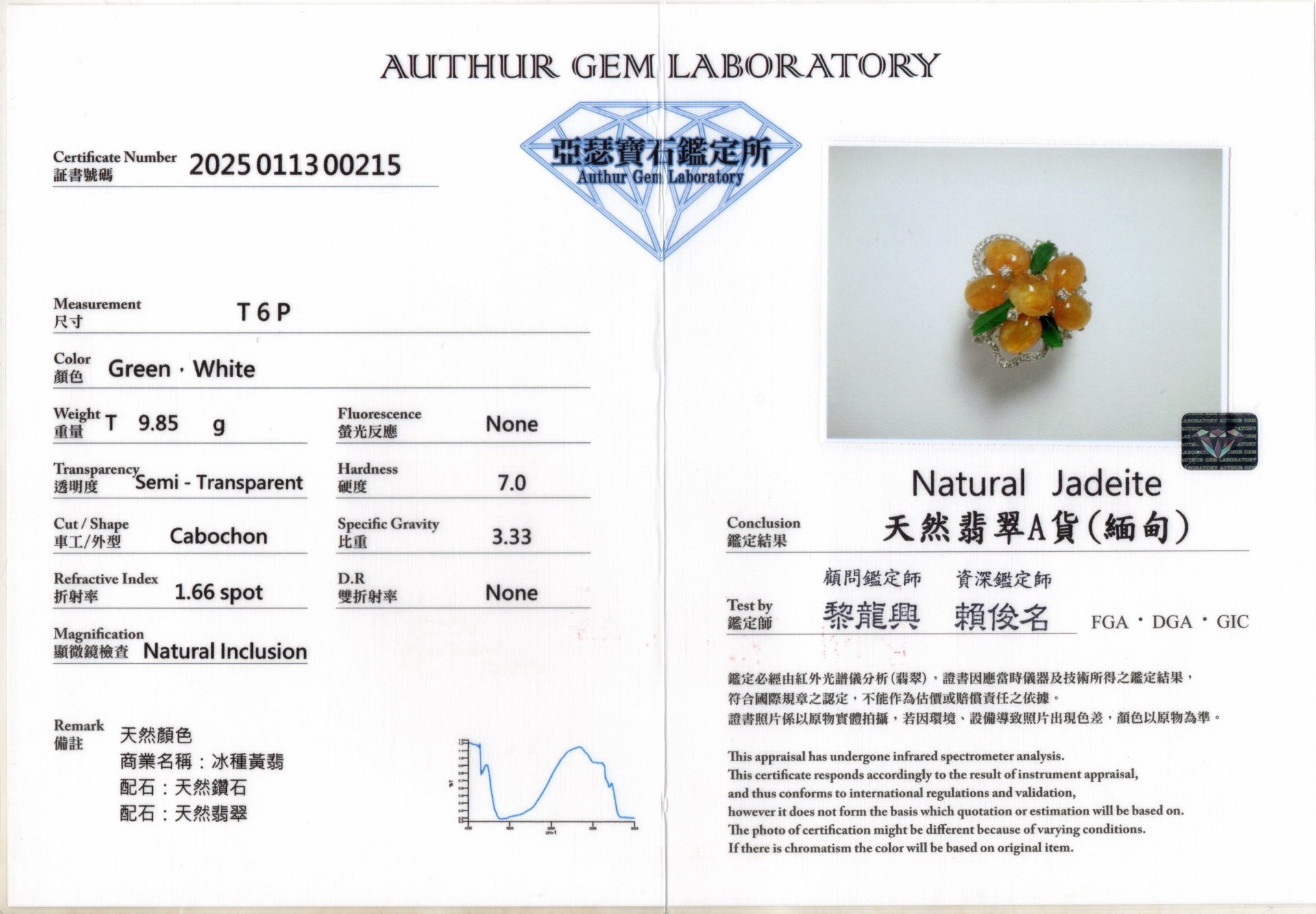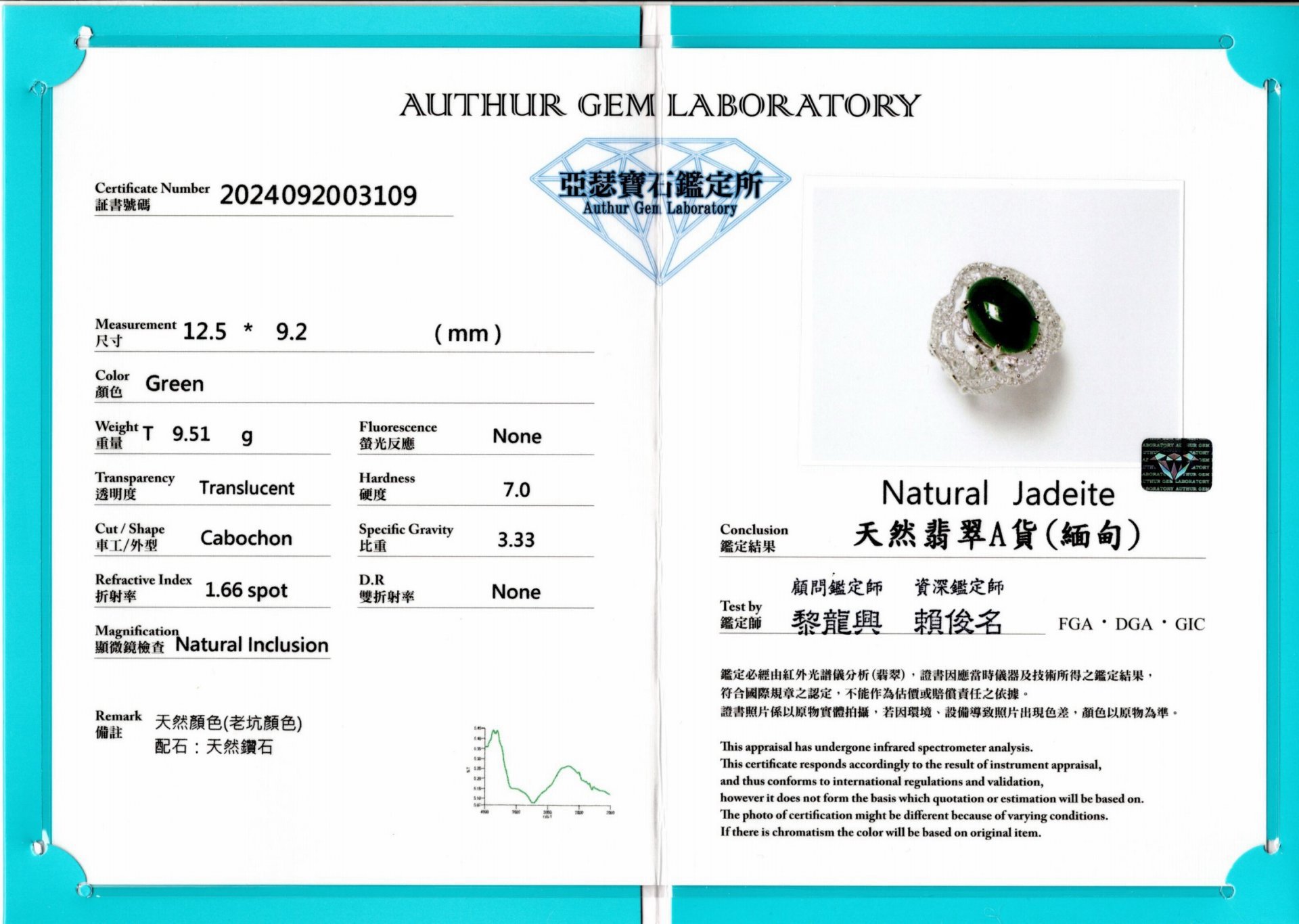 翡翠有玉石之王的美譽,是玉石中的硬玉類,其化學成分是鈉鋁矽酸鹽,礦物成分是以硬玉為主的輝石類,結構是由無數細小的纖維狀微晶縱橫交織而成的緻密塊狀集合體,具有毯狀構造。十分堅韌,能耐相當高的撞擊力和壓力,其製品經久耐用。在我國寶玉石界素有黃為翡,綠為翠的說法。玉扳指最早之前是騎射時,用來保護手指的一種用具,後來慢慢演變成權利、地位的象徵。在古代,在清朝的眾多皇帝當中,許多都喜愛玉扳指,乾隆的一生很喜歡玉,其中還對扳指情有獨鍾,還寫下了一首詩來詠贊:「快馬飛生耳後風,浮麋數肋中無空。漫言刻玉占佳兆,發羽抨弦屢此同。」其實在最早的時候,玉扳指只是作為一種弓射使用的器物,到後來,便慢慢地發展成為人們賞玩、收藏的對象。