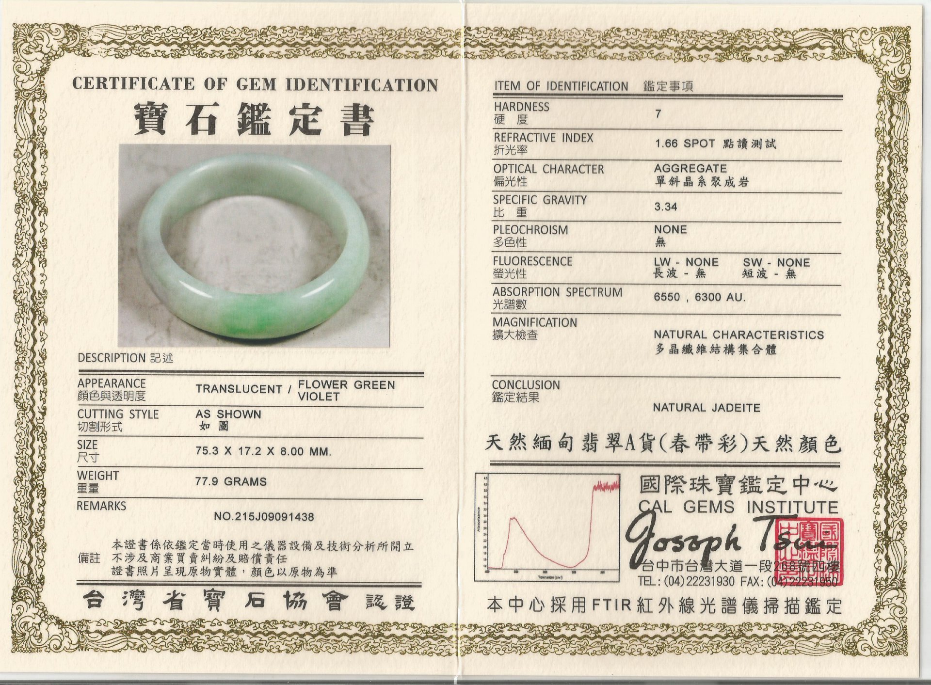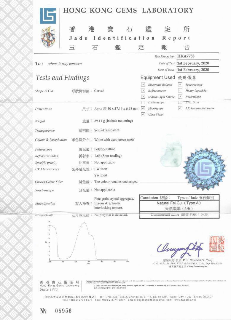 香港寶石鑑定所(歐陽秋眉)證書-冰地
