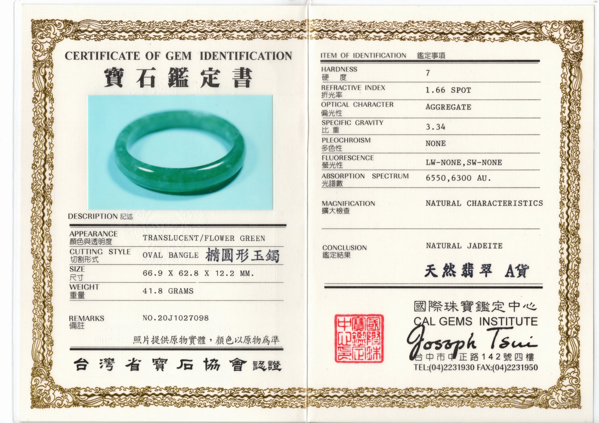 證書: 國際珠寶證