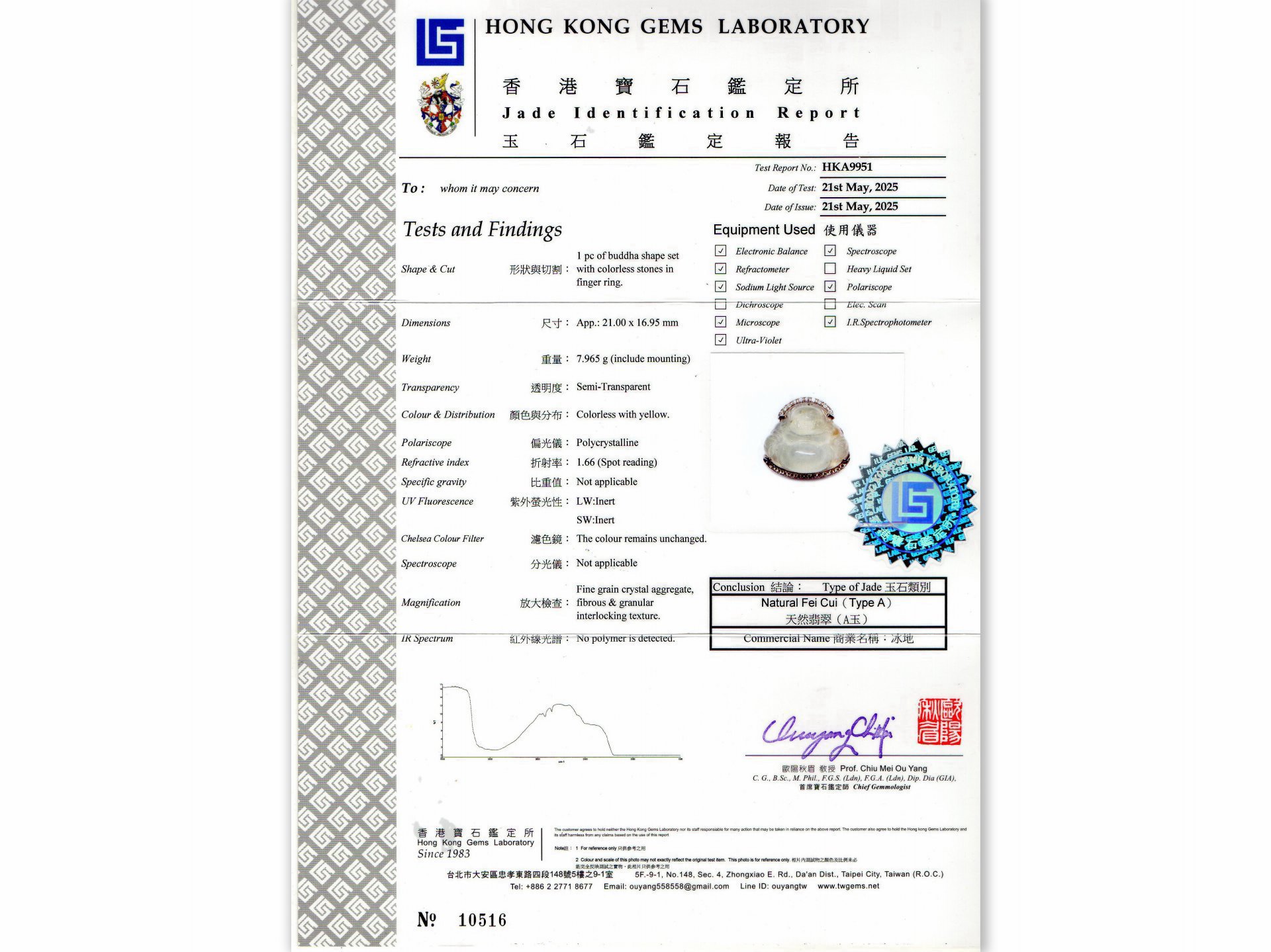 亞瑟寶石鑑定書(開新視窗)