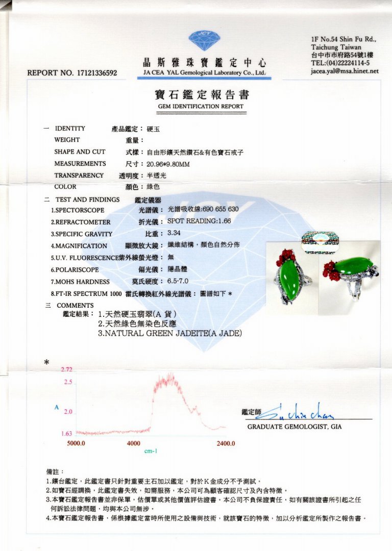 配石:鑽石35粒;剛玉9粒;翡翠4粒