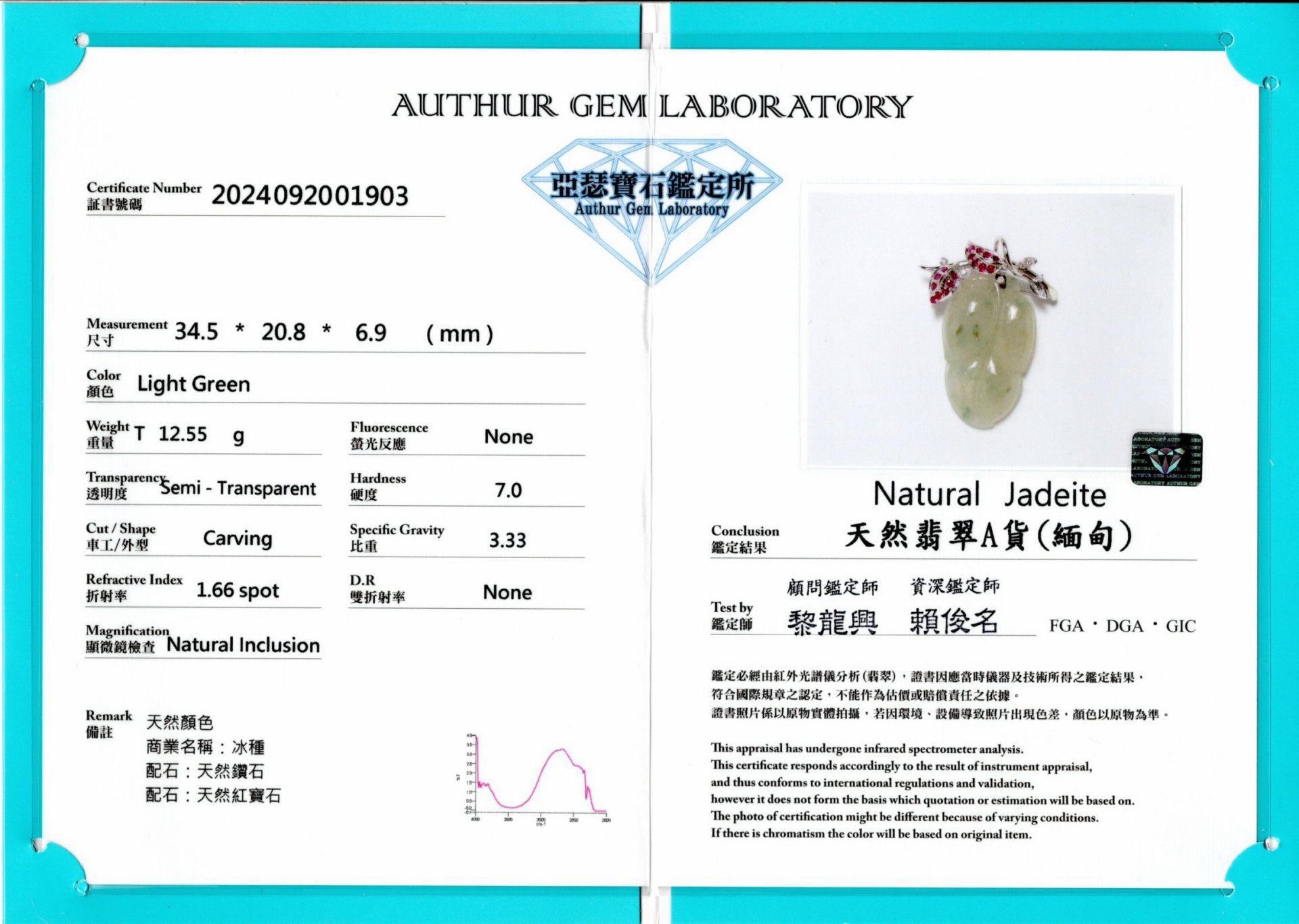 配石:鑽石34粒;剛玉62粒;翡翠5粒