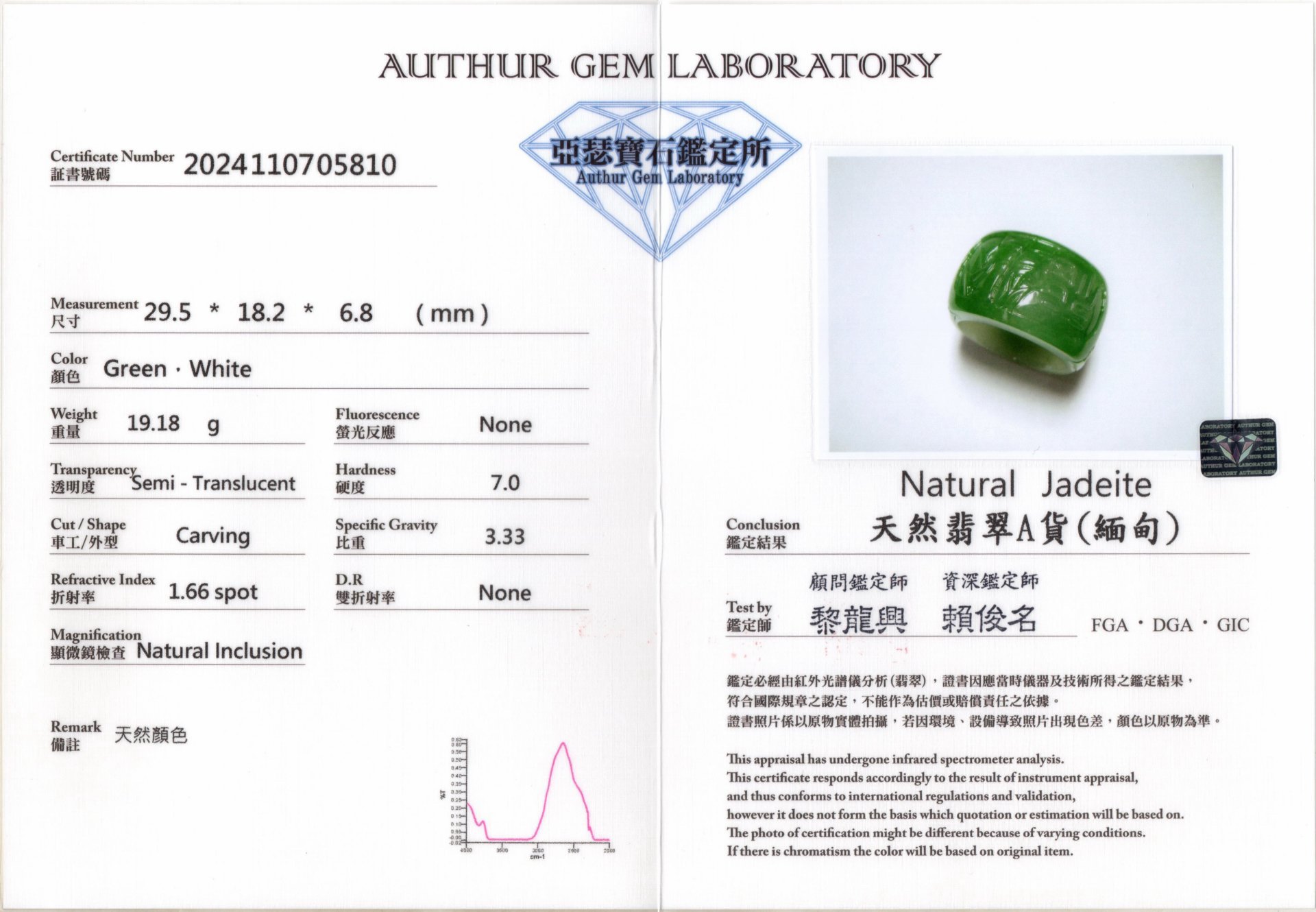 亞瑟寶石鑑定書(開新視窗)