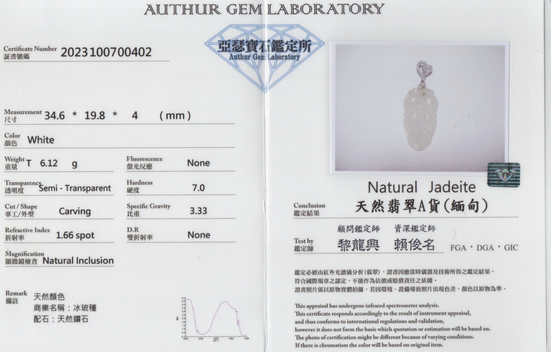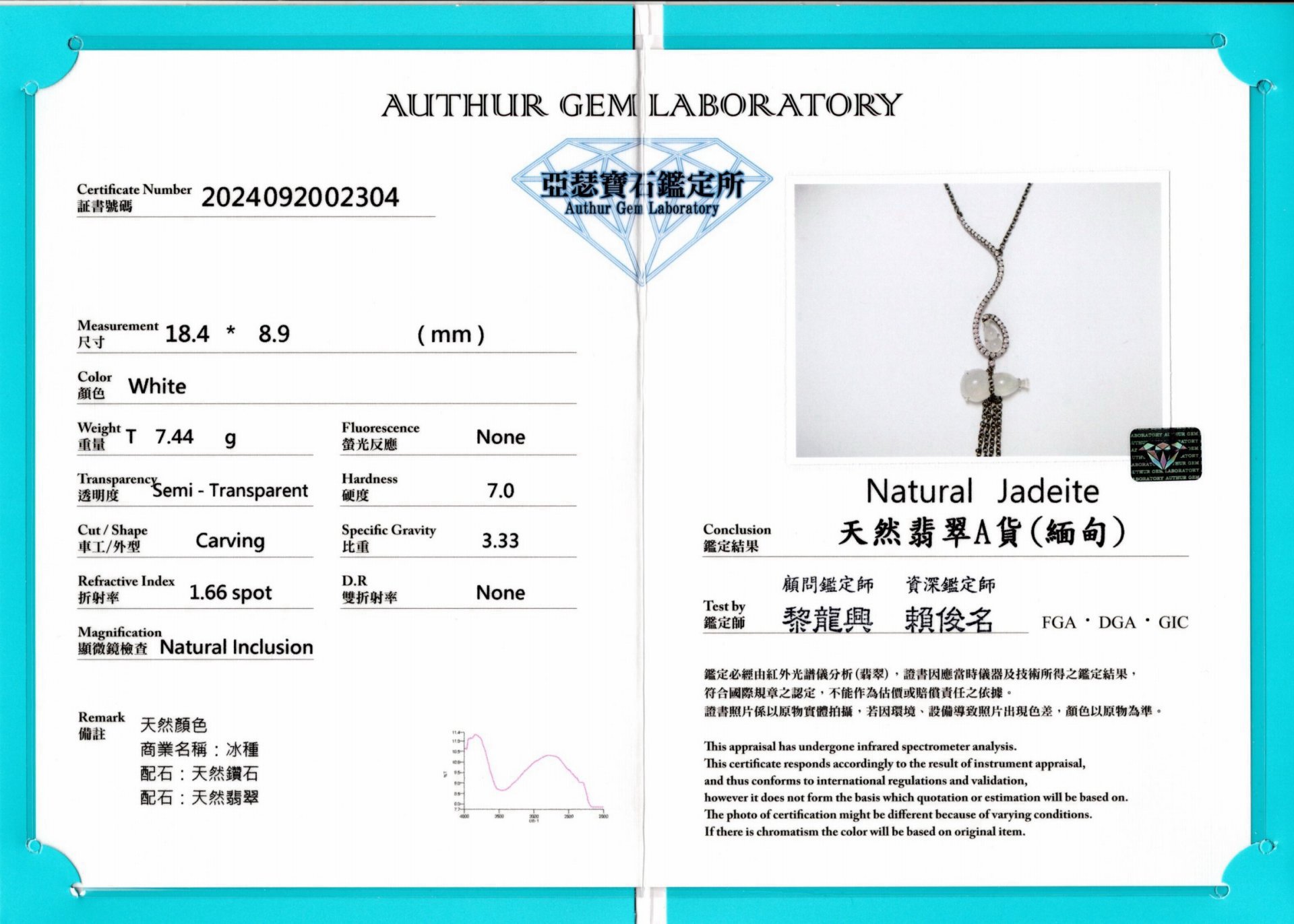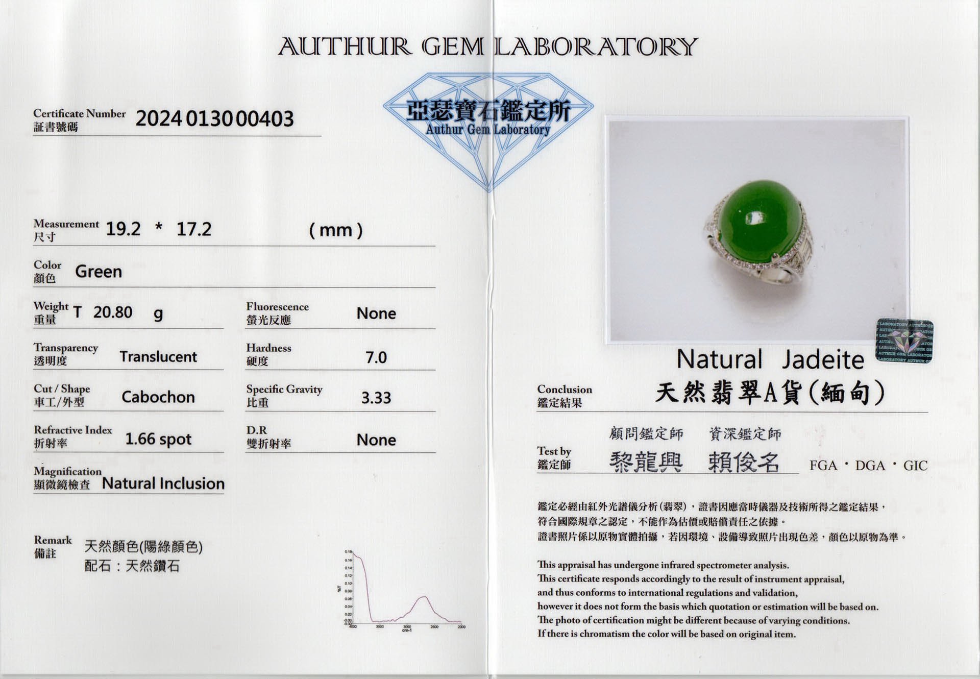 亞瑟寶石鑑定書(開新視窗)